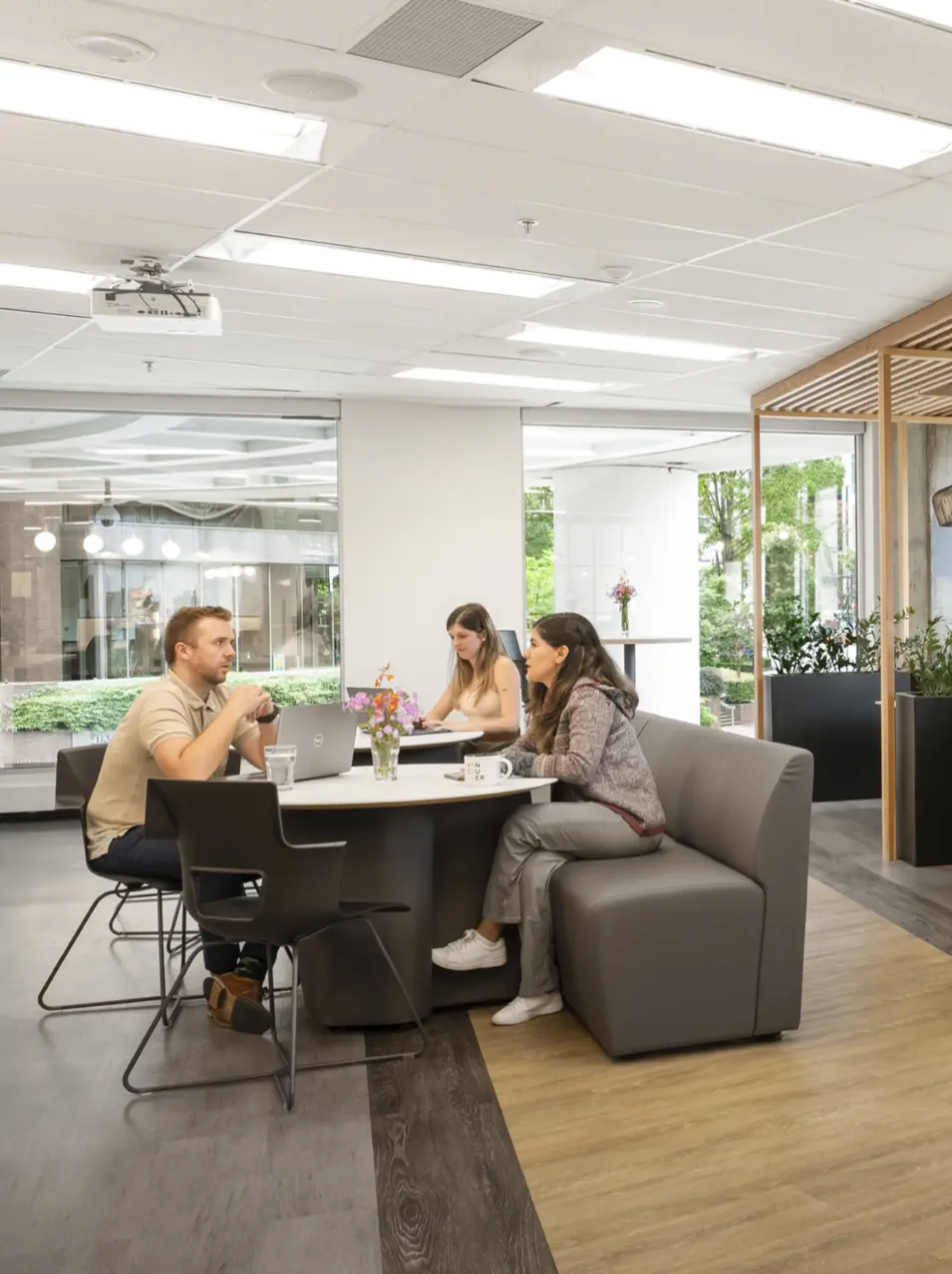Our beautifully designed office space has multiple meeting rooms, a fabulous multi-use lunchroom (Compass Café), sit-stand workstations, and configurable desks to soak in the views of the North Shore mountains and Coal Harbour.