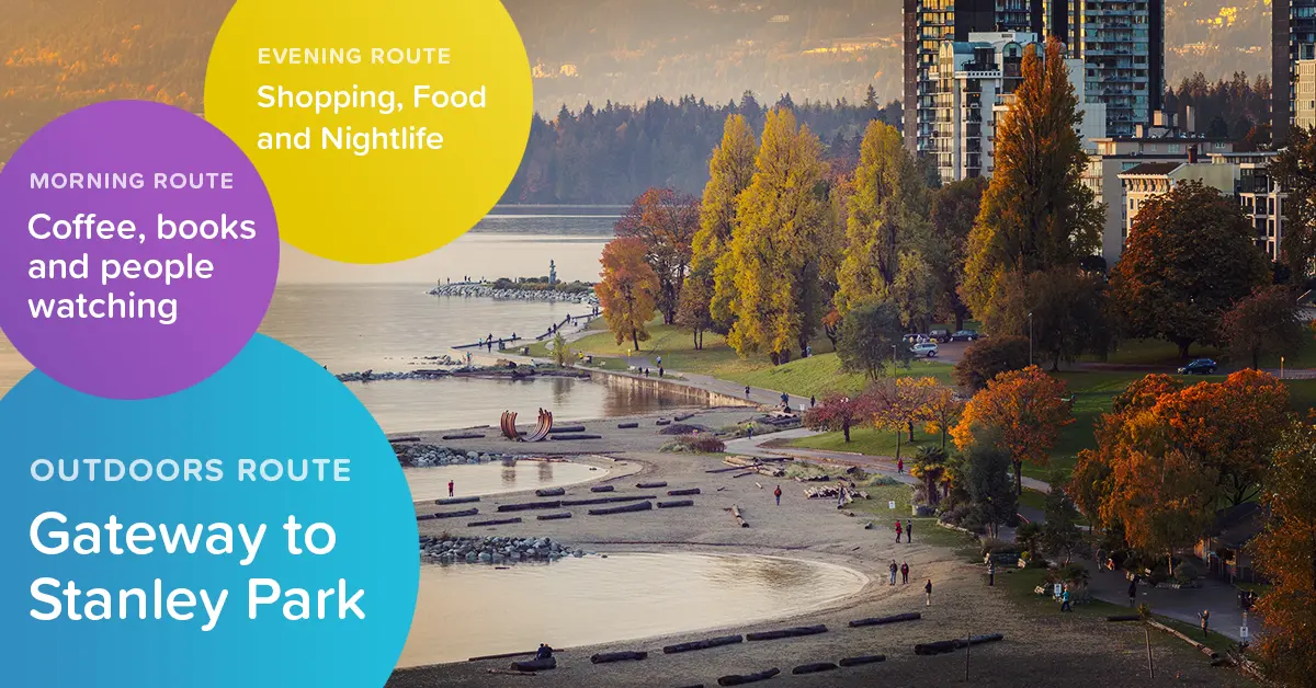 Other popular routes on the Roam app include Granville Island, Stanley Park and Yaletown, designed to make the most of every visit. Local recommendations ensure your guests take in the must-sees while skipping anything overhyped. Other routes serve as guides to Vancouver’s exciting events, such as the Vancouver Mural Festival.