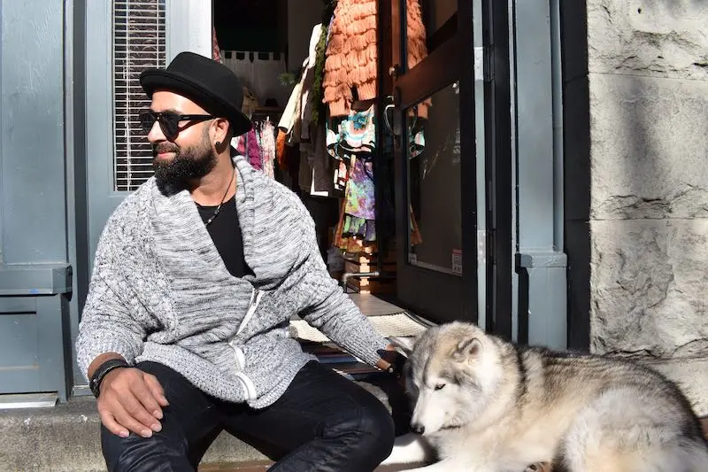 Owner Bahram Djam, and his fluffy dog Keenu, hail from Nelson where the first Bia Boro shop was born. The brand specializes in creating bamboo made clothing for men & women.