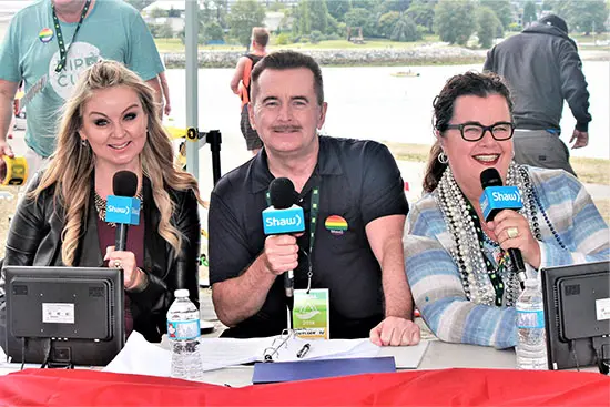 MPK: Well, first off, in 1996 I went to my boss’s office and asked her about covering Pride, as it was a major event in Vancouver. By 1996 the parade was getting fairly big, and she said yes. So we ended up covering it in its entirety the first year; the second year we went live, but it was a little sketchy back then because of the technology. We did it through 2000, then Shaw took over in 2001, and we did it for one year, but then they stopped doing it after that. We started doing parade coverage once again in 2012, and went live in 2015.