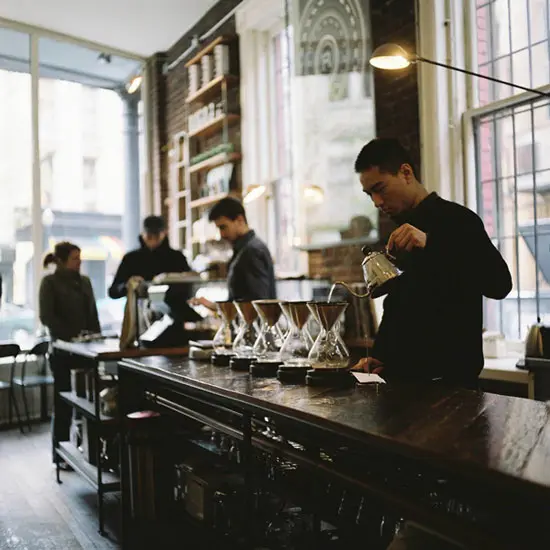 Perhaps the most iconic and indeed the most photographed of Gastown’s coffee shops, Revolver is a true java house. This is artisanal coffee making at it’s finest. An apothecary of sorts, stuffed with an array of magical equipment where mad scientist like baristas concoct world-class coffee that’s carefully metered out to exact measurements and specifications. The Wizards are at play in Revolver on Cambie Street. There are two rooms – one, where the coffee and other drinks are prepared with some small booths for intimate seating and an adjoining room, Archive, where laptops and industrious coffee-flies are in plentiful supply.