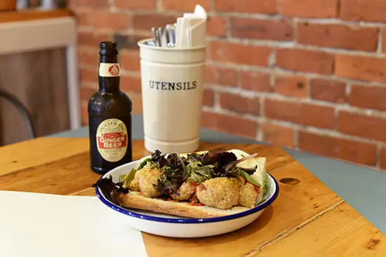 Kofta Meatball Kitchen serves over 200 combinations of handcrafted meatballs, bases, sauces, and garnishes, as well as daily specials. Kofta only uses ingredients that are sourced from local farmers, butchers, bakers, and drink makers along with quality products that are made ethically, free of antibiotics, hormones, and chemical additives. Choose from their menu of bowls, baguettes, salads and sliders. Recommend is the THE HITCH BAGUETTE– SPICY PORK BALLS, ASIAGO, MARINARA SAUCE, JALAPENOS, HERBED PARM PANKO.