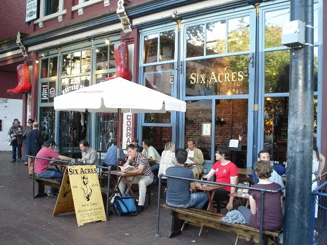 Six Acres is known for its lively patio and excellent view of Maple Tree Square. The pub is a great place to relax while still feeling part of the vibe on a Friday night. Choose from 15 craft beers on tap, ranging from popular local microbreweries to kegs shipped in from Oregon. There are high ceilings here with exposed brick and the feeling of being in a 1870’s saloon. The food is more than the obvious nachos or yam fries – have a gander at their Seared Bison Steak Salad, Lamb Meatballs or fresh Mussels.