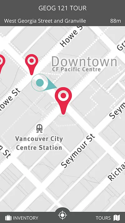 Using technology developed by Vancouver startup Motive.io, this UBC sponsored app allows students, residents and tourists alike to immerse themselves in the tour content through the use of GPS and audio AR. A map displays each new point as you progress through the experience. As you approach the northern stairs of the Vancouver Art Gallery entrance the voice triggers and your adventure begins.
