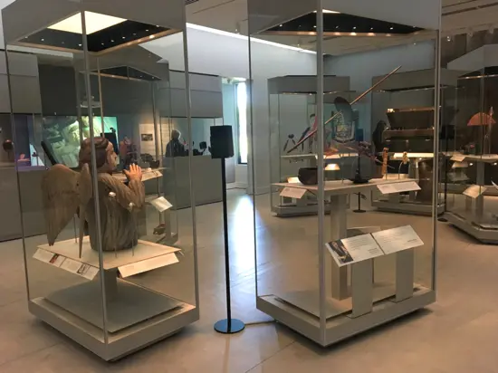 The range of items is impressive, including blankets, rattles, bowls, woven baskets, carved masks, and clothing. Items are accompanied by descriptions that encourage visitors to think deeply about these pieces thematically and historically. Quotes from artists, curators, and Indigenous community members facilitate conversations about the items as well.