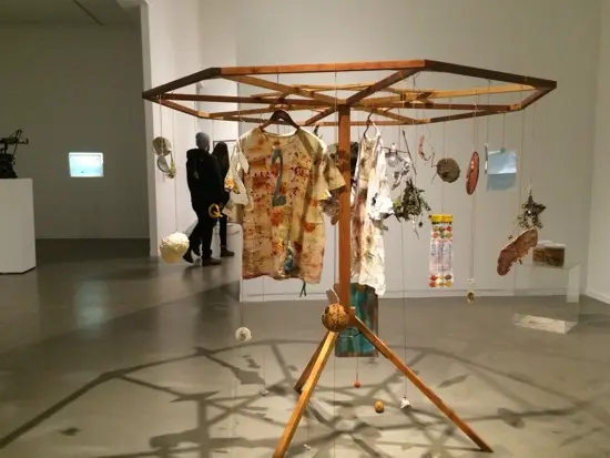 For example, a large mobile by Derya Akay called Cylcodrum was created when Akay searched for objects in the Gallery’s storage and technical facilities and repurposed them, along with ceramics, preserved foodstuffs, and other found materials.