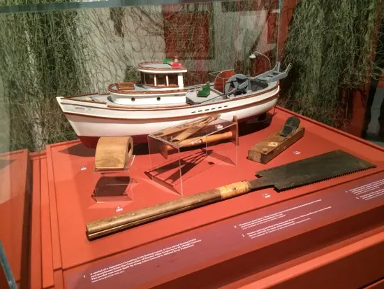 Descriptions of net-making as well as boat building appear next to models of Japanese Canadian-built fishing vessels.