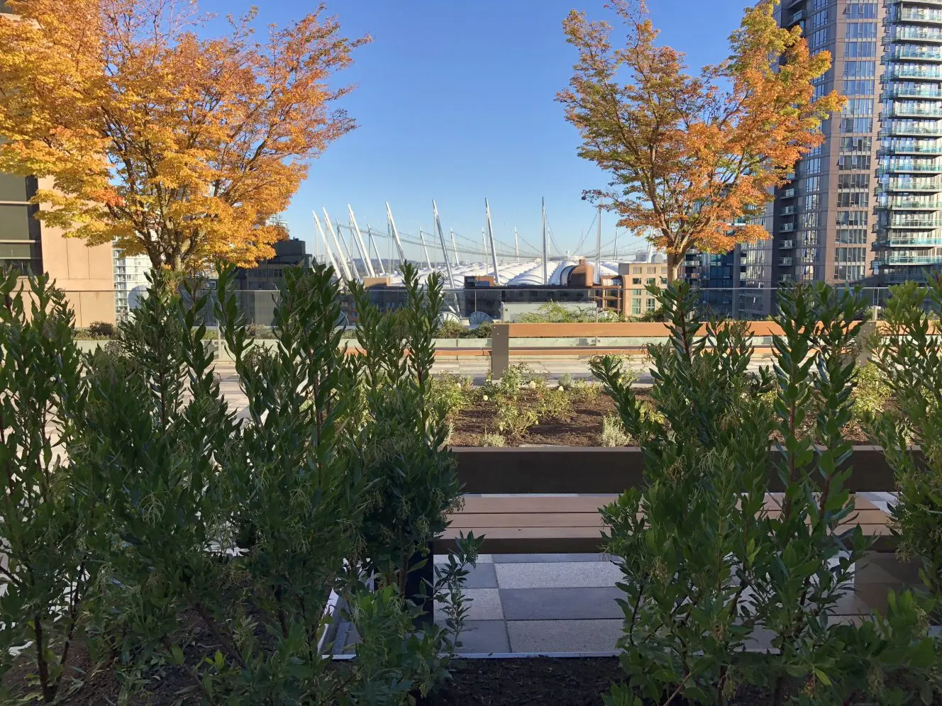World-renowned landscape architect Cornelia Hahn Oberlander designed the rooftop garden, adding an additional 1,560 square metres of outdoor space. As you step outside onto the rooftop, you’ll come across various plants, flowers and sweeping views of the city, including a unobstructed view of BC Place.
