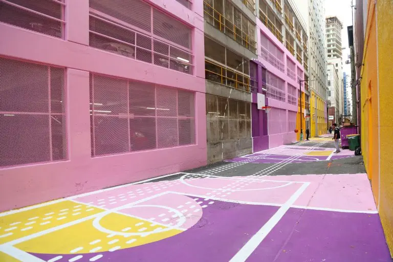 As part of its More Awesome Now project, the Downtown Vancouver Business Improvement Association, HCMA Architecture + Design and the City of Vancouver have come together to transform several drab laneways into vibrant, engaging, accessible urban parks. Featuring basketball hoops, a foosball court, and hopscotch, More Awesome Now encourages people to BYOB (bring your own ball), have fun, and make new social connections.