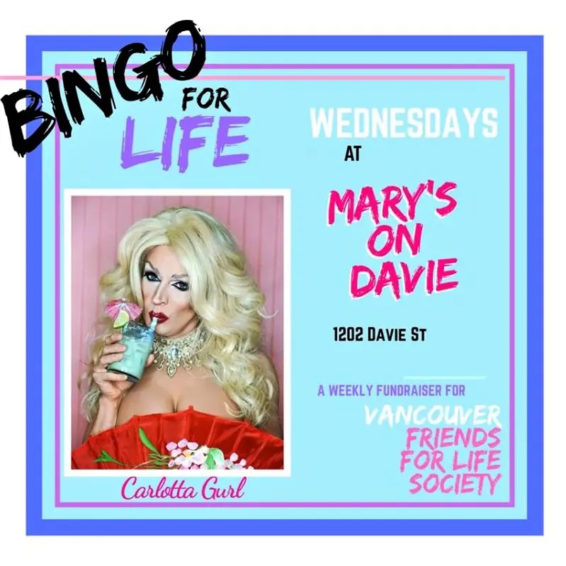 The Vancouver Friends for Life Society began in 1993 as wellness centre in Vancouver’s West End, providing holistic and wellness programs for people and their families living with life-challenging illnesses, including HIV/AIDS, Hepatitis C and cancer. Attending their weekly Bingo For Life with Carlotta Gurl at Mary’s On Davie is a great way to help them raise funds, or you can donate directly online.