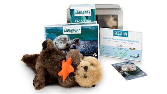 Since the 1980s, the Aquarium and its Marine Mammal Rescue Centre — the only one of its kind in Canada — have supported sea otter rehabilitation and provided a home for non-releasable animals. To support the Aquarium’s conservation and education efforts and the Marine Mammal Rescue Centre, you can symbolically adopt a sea otter by purchasing an Aquadopt Kit or making a contribution.
