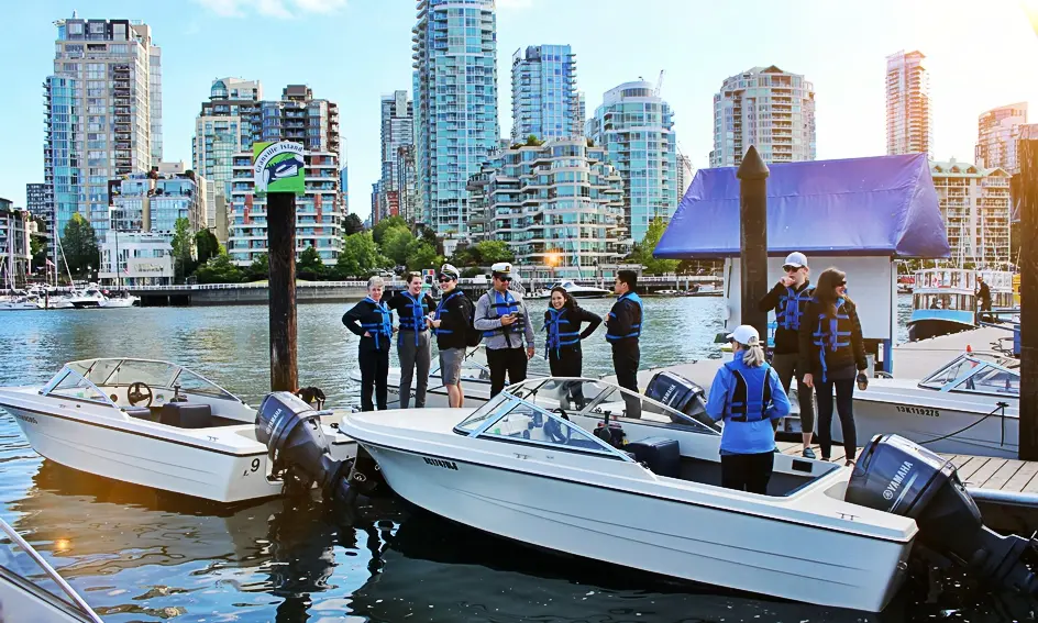 Granville Island Boat Rentals specializes in speed boats for both zippy and leisurely trips on Vancouver waters. Options include an Hourston Glascraft for 4 people, a GT Deluxe for 6 people, and Bayliner Element for 8 people. Suggested routes include a Seal Colony route (roughly 3 hours round trip) with stops at English Bay, Stanley Park, Lighthouse Park in West Vancouver, and Snug Cove on Bowen Island. At Pam Rocks in Howe Sound, you’ll have the chance to see harbour seals, and north of Pam Rocks, you might even see a bald eagle at the National Bird Reserve.