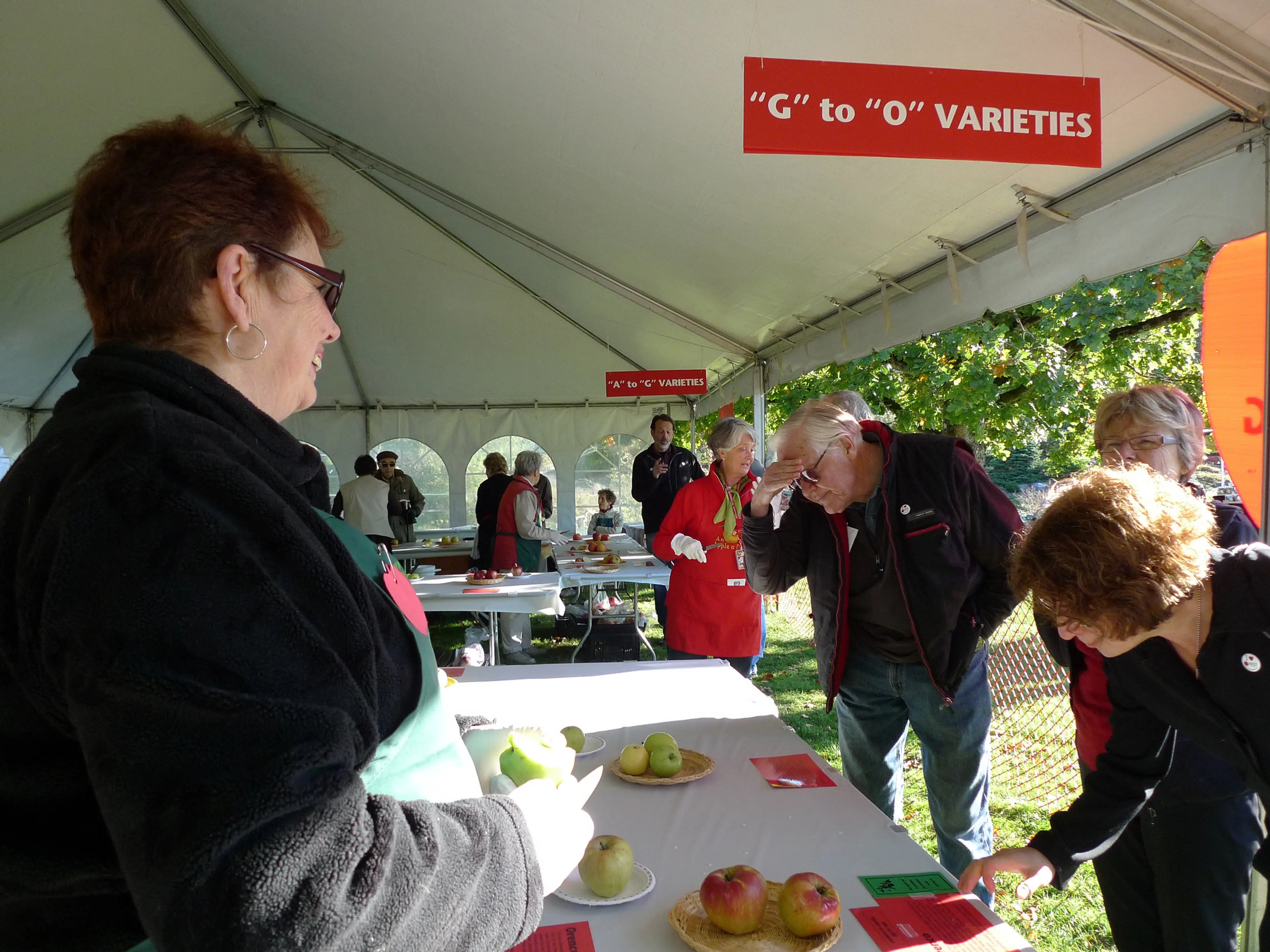 One of the most popular activities at the Apple Festival is the Friends of the Garden Apple Tasting Tent. For $5, curious event goers can taste a huge variety of new and heritage BC-grown apples. The festival is expecting to receive and sell approximately 34,000 pounds (15,422 kilos) of apples (63 varieties of heritage, new and “tried and true” apples), as well as over 70 varieties of apple trees.