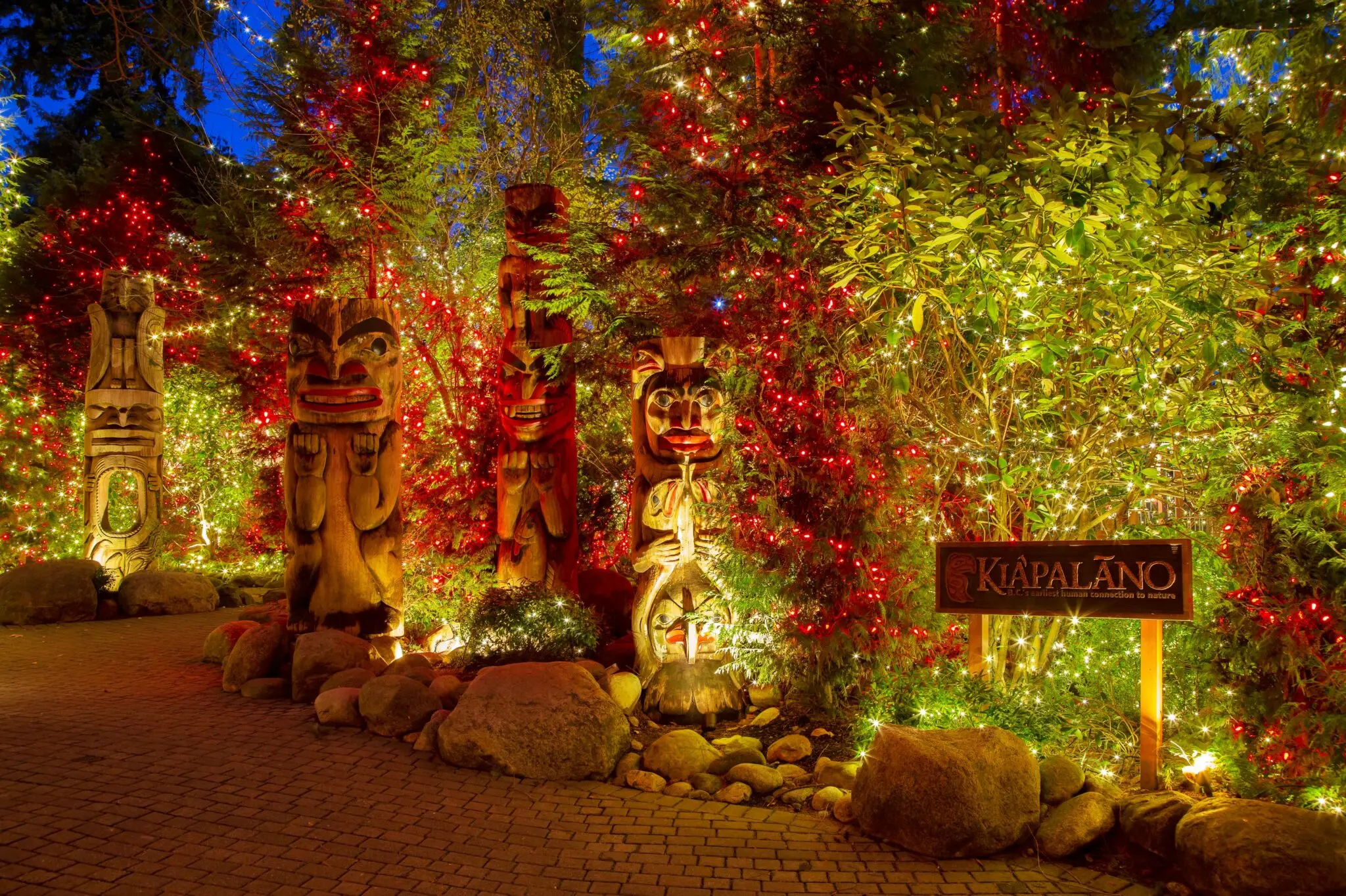 The popular Capilano Suspension Bridge Park has transformed into a holiday wonderland—Canyon Lights—from now until January 22, 2023 (closed Christmas Day). The suspension bridge, located above the rushing waters of the Capilano River, is lit up. The Treetops Adventure with its seven bridges suspended between trees is illuminated, and the Cliffwalk features the “Arc de Lumina” light tunnel.