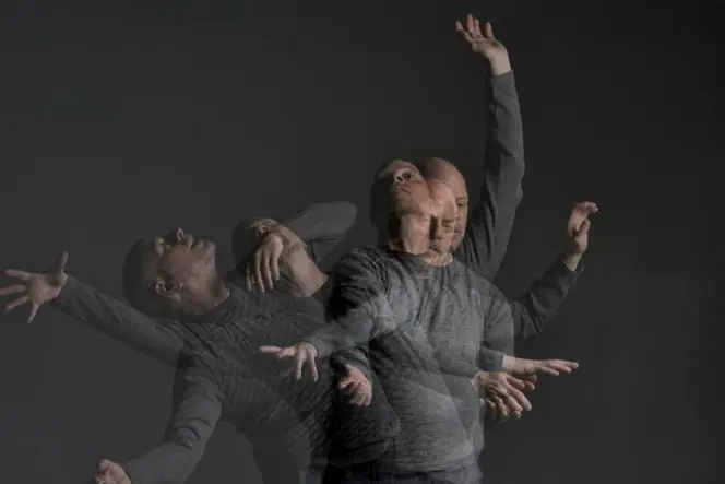 Photographs positioned on the left of the stage reminded the audience that this was an autobiographical piece, a consideration of Laughlin’s trajectory and history as a dancer, as well as his current physical state. In one of the voiceovers, Laughlin acknowledges his physical limitations with age and that the choreography will celebrate them, as opposed to seeing them as hindrances to his dancing.