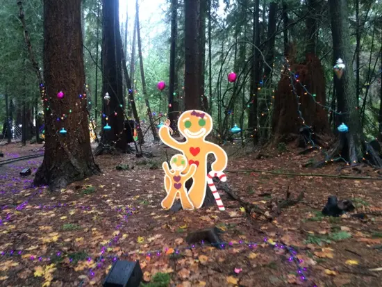There were the twinkly lights, the displays of all sorts (dancing Christmas trees, the Grinch, Rudolph, Santa, etc), and Christmas carols and other festive music, but during the day, instead of being enveloped in darkness, I got to marvel at the beauty of the forest as we wended our way through the park.