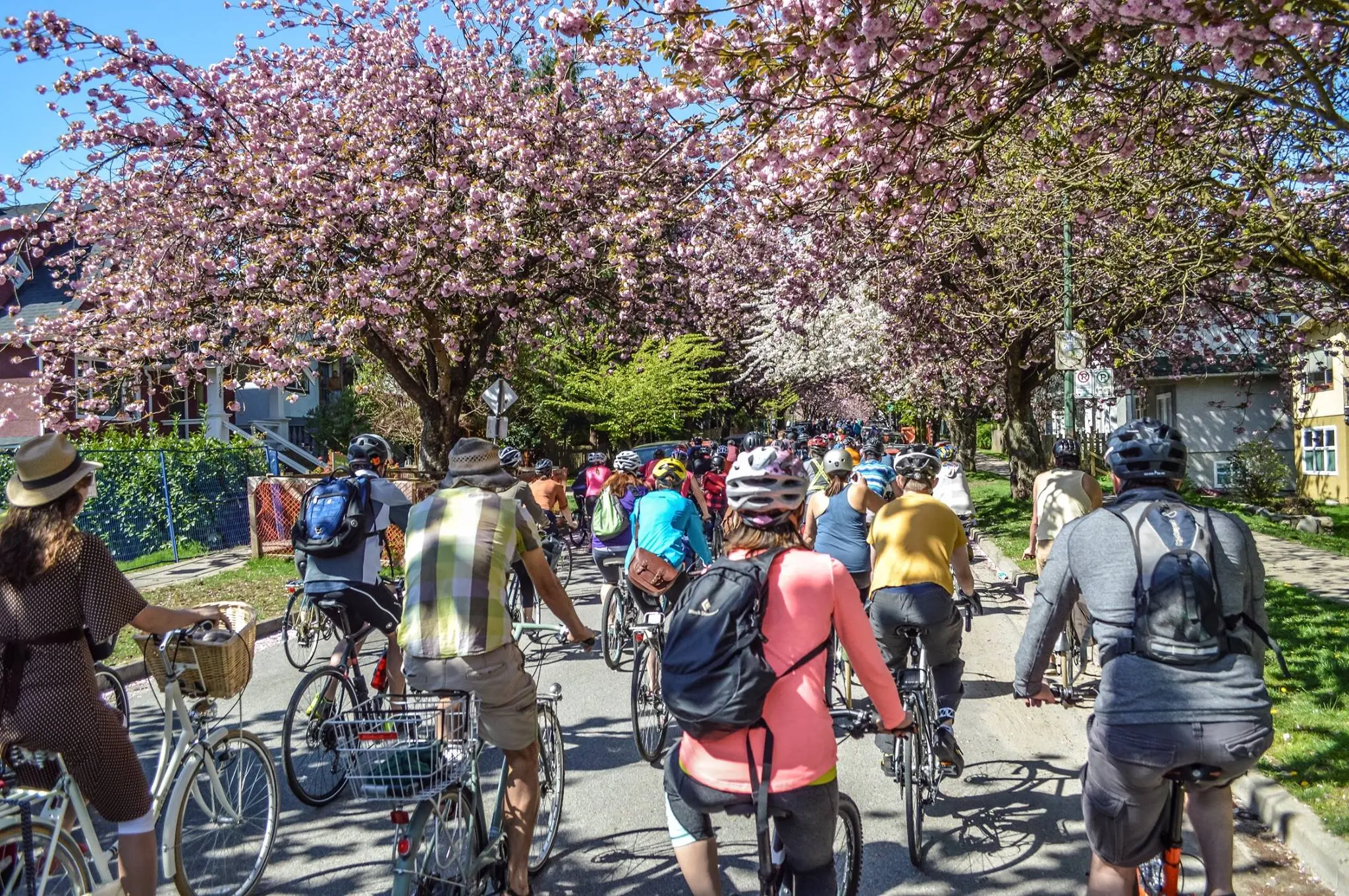 It’s time to Bike the Blossoms! Congratulations Vancouverites, our patience has been rewarded! This quintessential Vancouver ride symbolizes all things spring and is one of my favourite local cycling events. Should you only hop on your bicycle once this year, Bike the Blossoms is the ride for you! In conjunction with the Vancouver Cherry Blossom Festival, this free, annual group ride, organized in partnership with Velopalooza, guides cyclists of all ages, shapes and sizes along a route carefully constructed to showcase the best of Vancouver’s gorgeous cherry blossoms.