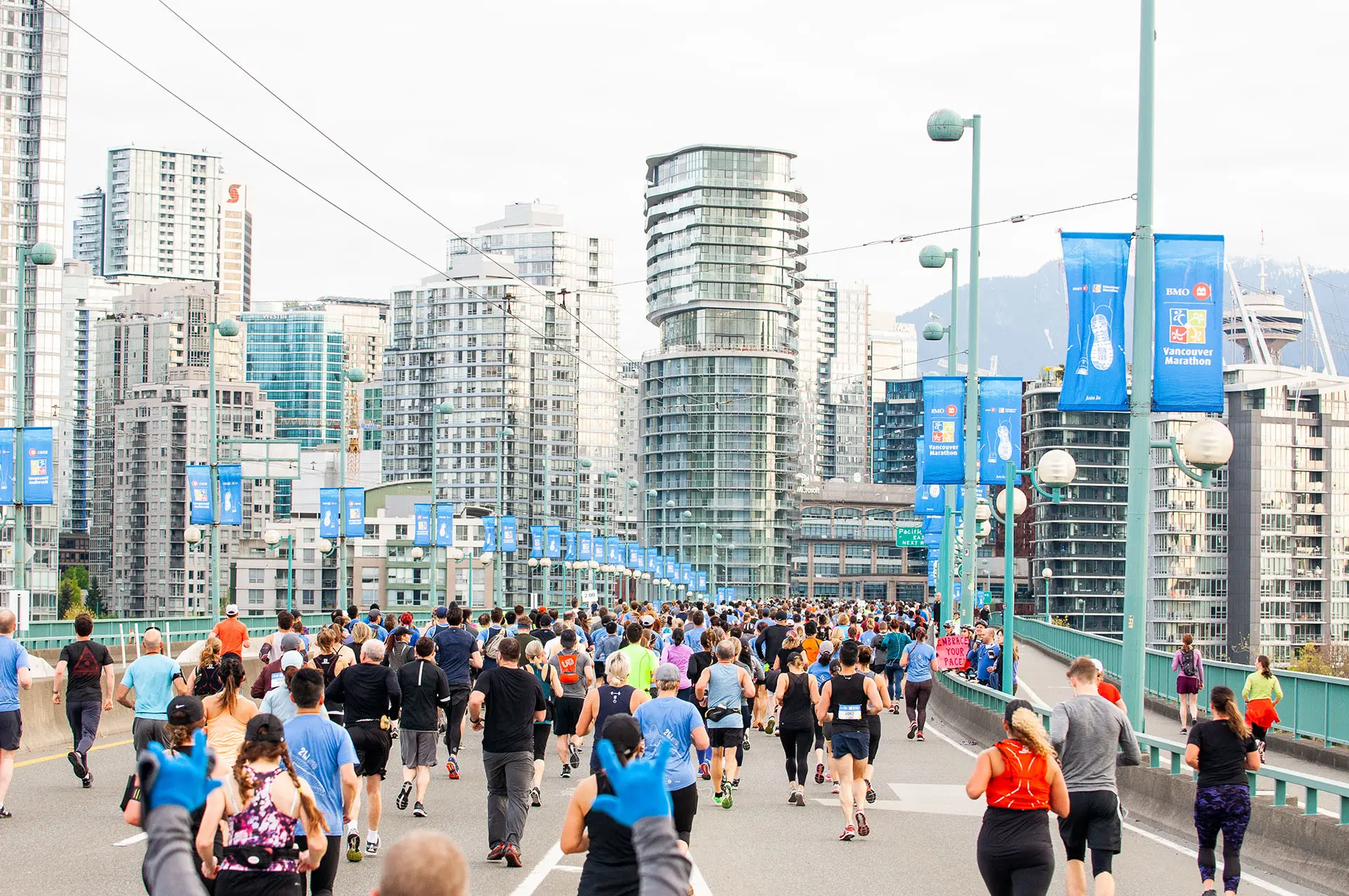 The BMO Vancouver Marathon offers shoreline views and stunning scenery like no other marathon. The race was first established in 1972 with 32 finishers and has now grown into Canada’s largest marathon race.