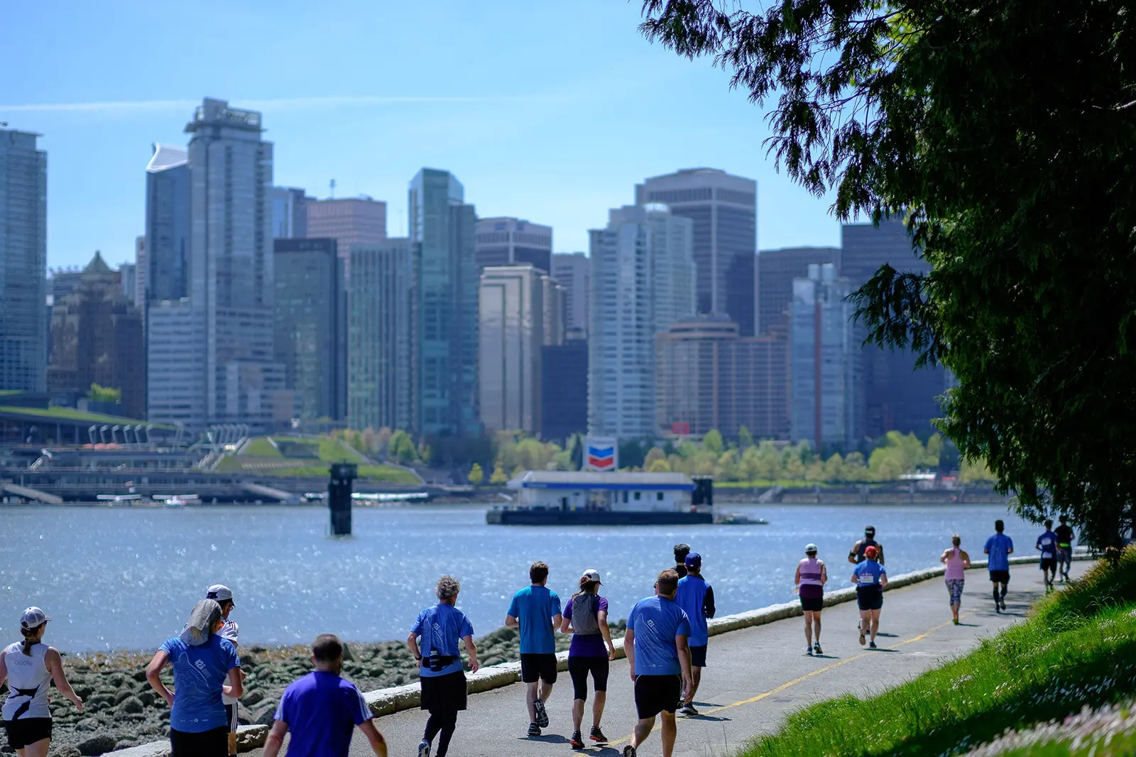 You may run the 8km and enjoy the tranquil shade from cedar and hemlock trees in Stanley Park before breezing through Coal Harbour to the bustling downtown finish line where you’ll celebrate with all the marathon runners amidst cheering spectators.