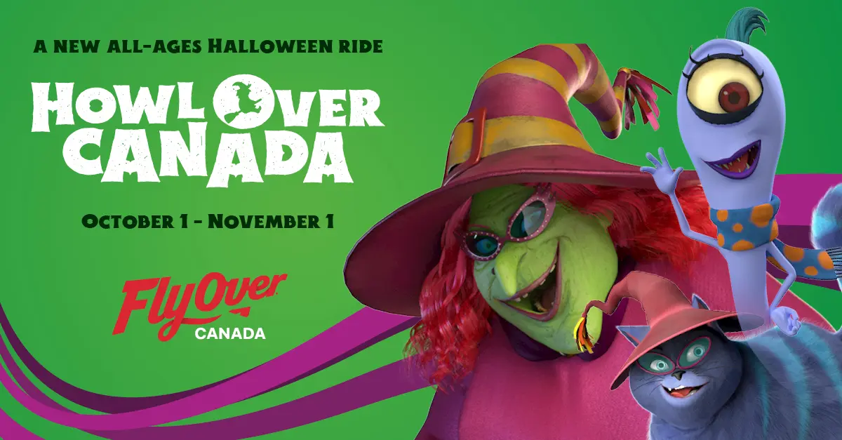 FlyOver Canada tells us more about their spook-tacular Halloween ride: HowlOver Canada. Join Biker Mama the Witch on an unforgettable Halloween flight ride for all ages. HowlOver Canada lets you soar through the skies with a band of spooky sidekicks on your way to a music festival that’s out of this world!