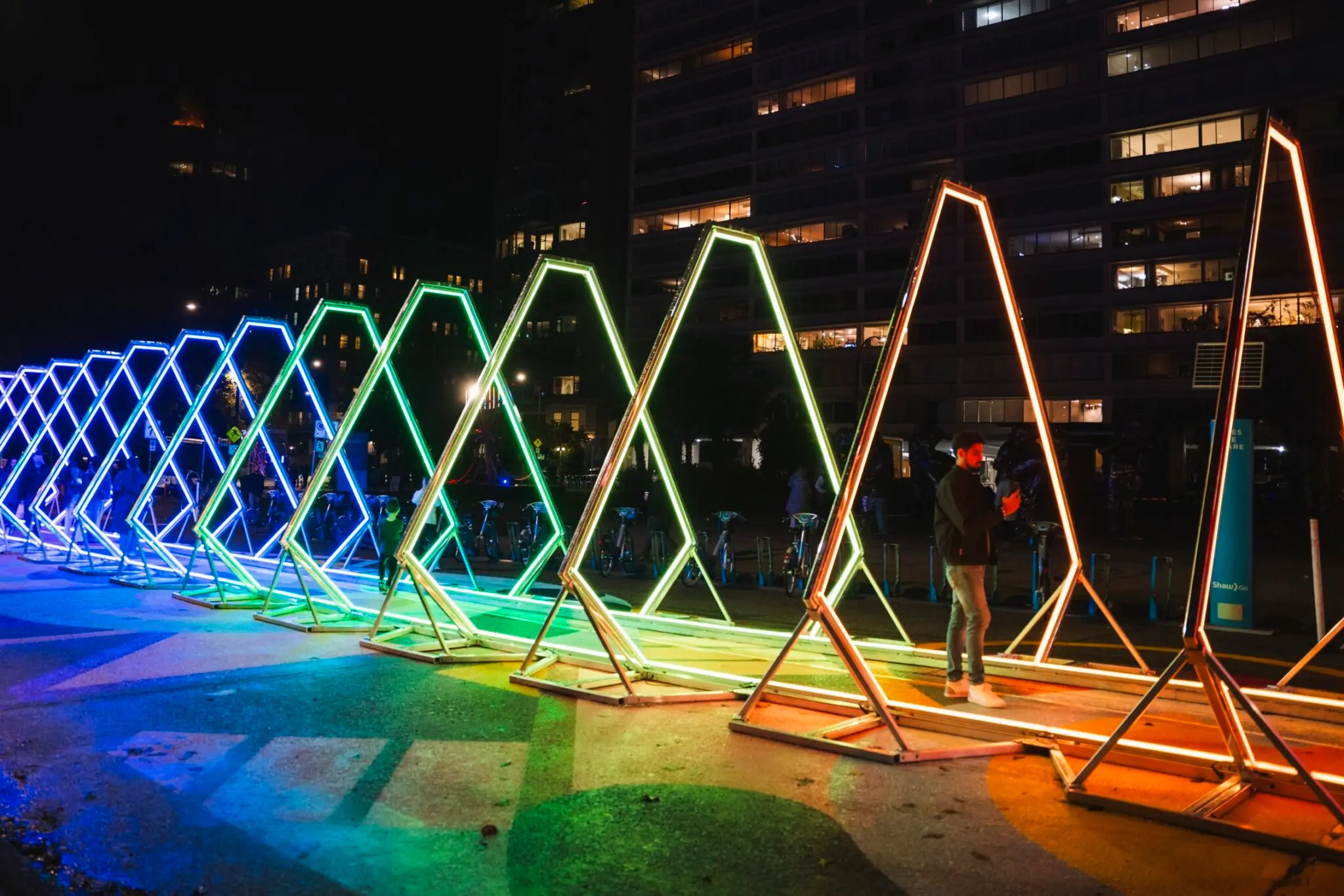 New locations include Coal Harbour featuring the “Borealis” art installation, an immersive light and sound art piece by Swiss artist Dan Acher, and “Translucens,” a holographic projection on a curtain of water with an accompanying soundtrack by Finnish designer Niko Tiainen.