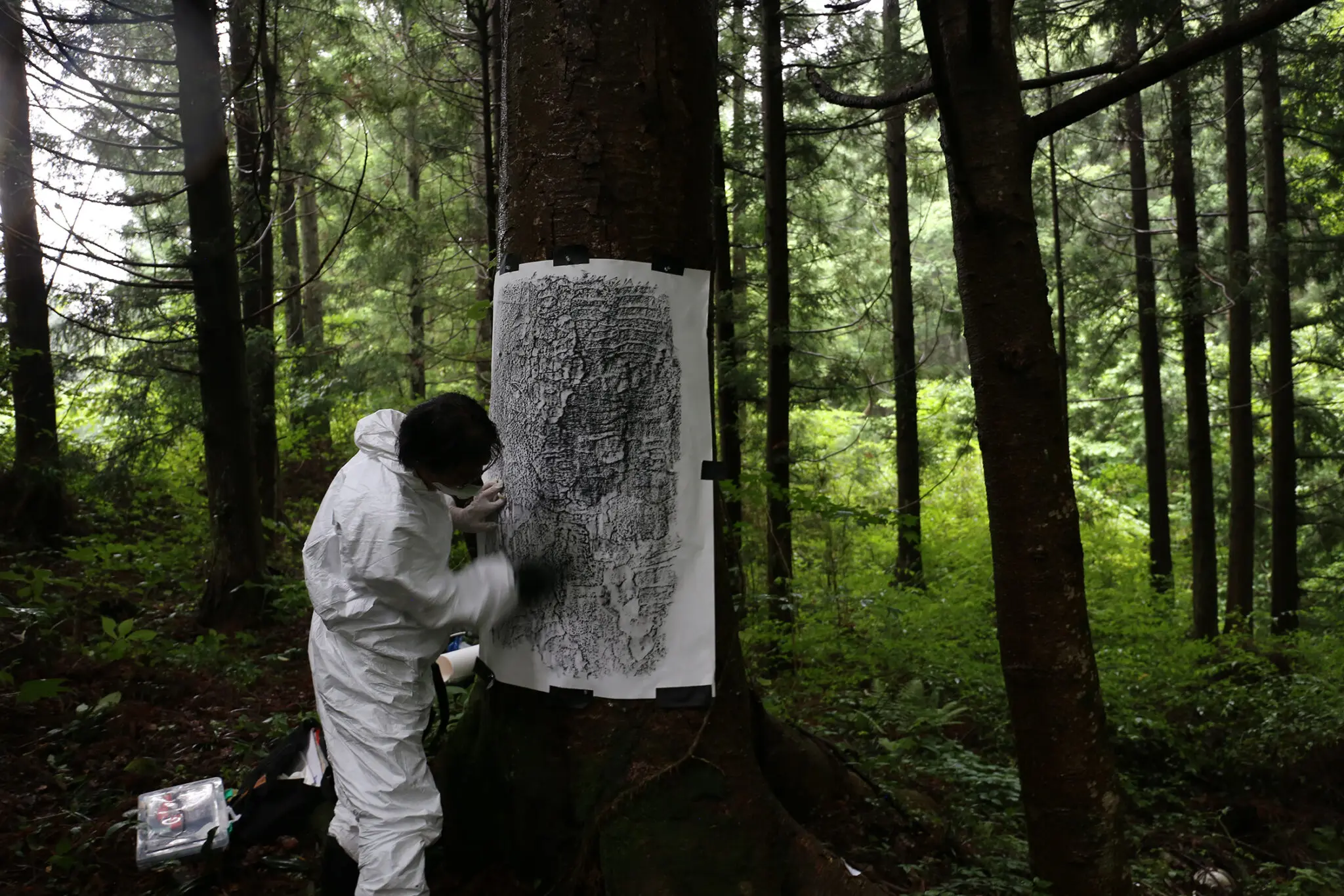 Renowned artist Masao Okabe will present The Irradiated Trees Series: From Hiroshima to Fukushima. The large installation consists of 114 frottage works on paper, displayed in a cylindrical shape to represent both the silhouette of a tree and a nuclear reactor. The frottage works were created by rubbing and tracing onto paper the surfaces of various objects by the artist between 2008 and 2017 from areas affected by nuclear disasters in Japan. A photograph and a video by longtime collaborator and photographer Chihiro Minato will be displayed, showing Okabe’s process in creating the frottage works.