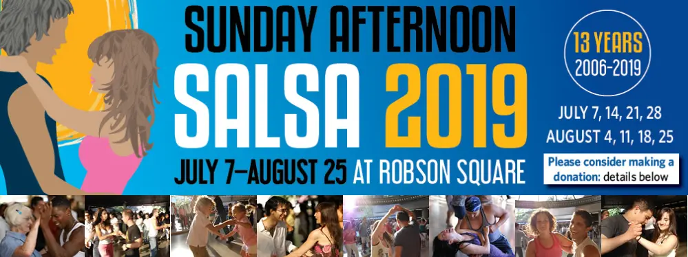 What: Sunday Afternoon Salsa at Robson Square is an annual series of FREE outdoor salsa dances held at Robson Square in downtown Vancouver during the summer months of July and August. Try the free lesson at 3pm, watch the performances at 5pm, or just check out the social dancing throughout the afternoon and see how much fun it is!