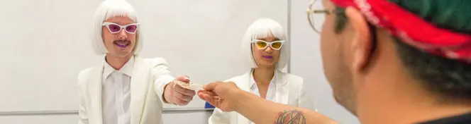 What: An interactive, site-specific game with four players and $1,000 cash—4inXchange is a pop art business meeting that guides you through a series of dialogues, chances, competitions, and meditations. Use the cash on the table to get to know your fellow participants, while xLq asks provocative questions about value, intimacy, love, and truth. Returns and exchanges guaranteed.