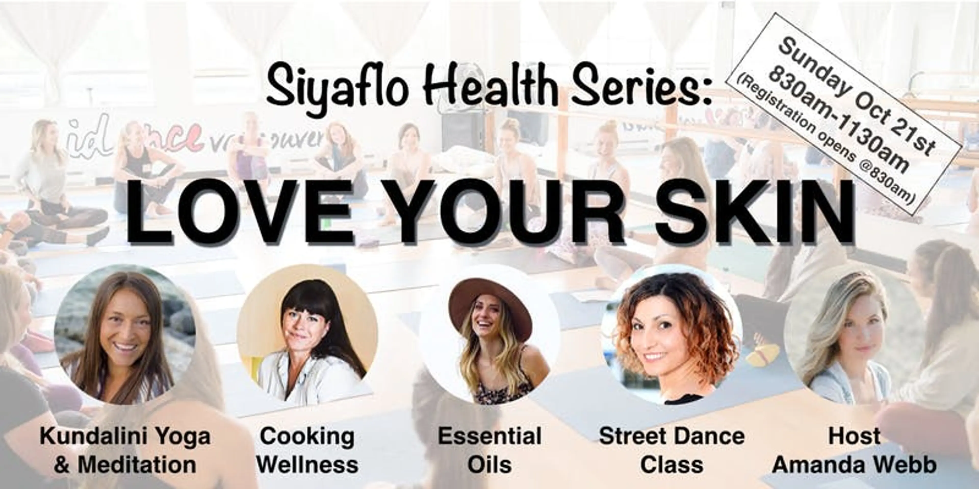 Siyaflo Health Series hosts its 4th event – Love Your Skin – in Vancouver on Sunday October 21st. The networking event will feature sessions of mini sessions Kundalini yoga and meditation, nutrition, street dance, essential oils, and others to help you feel good in your skin. Attendees will receive 2 free dance classes at iDance Vancouver and other goodies. For more details and to purchase tickets, click here!