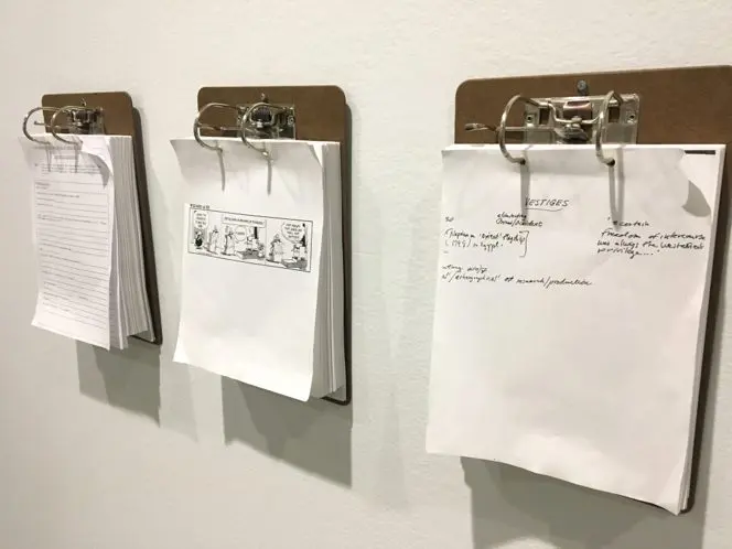 Two particularly provocative contributions to the exhibitions are from Jayce Salloum and Sonny Assu. The former’s work Kan ya ma Kan (There was and there was not) (1988-98) is an excerpt from a larger body of work that examines the artificial/constructed depiction of Lebanon and its history. Formed like an archive, this mixed media installation forces the visitor to interrogate the truth, the veracity of documents, and the process of assembling meaning from scattered fragments.