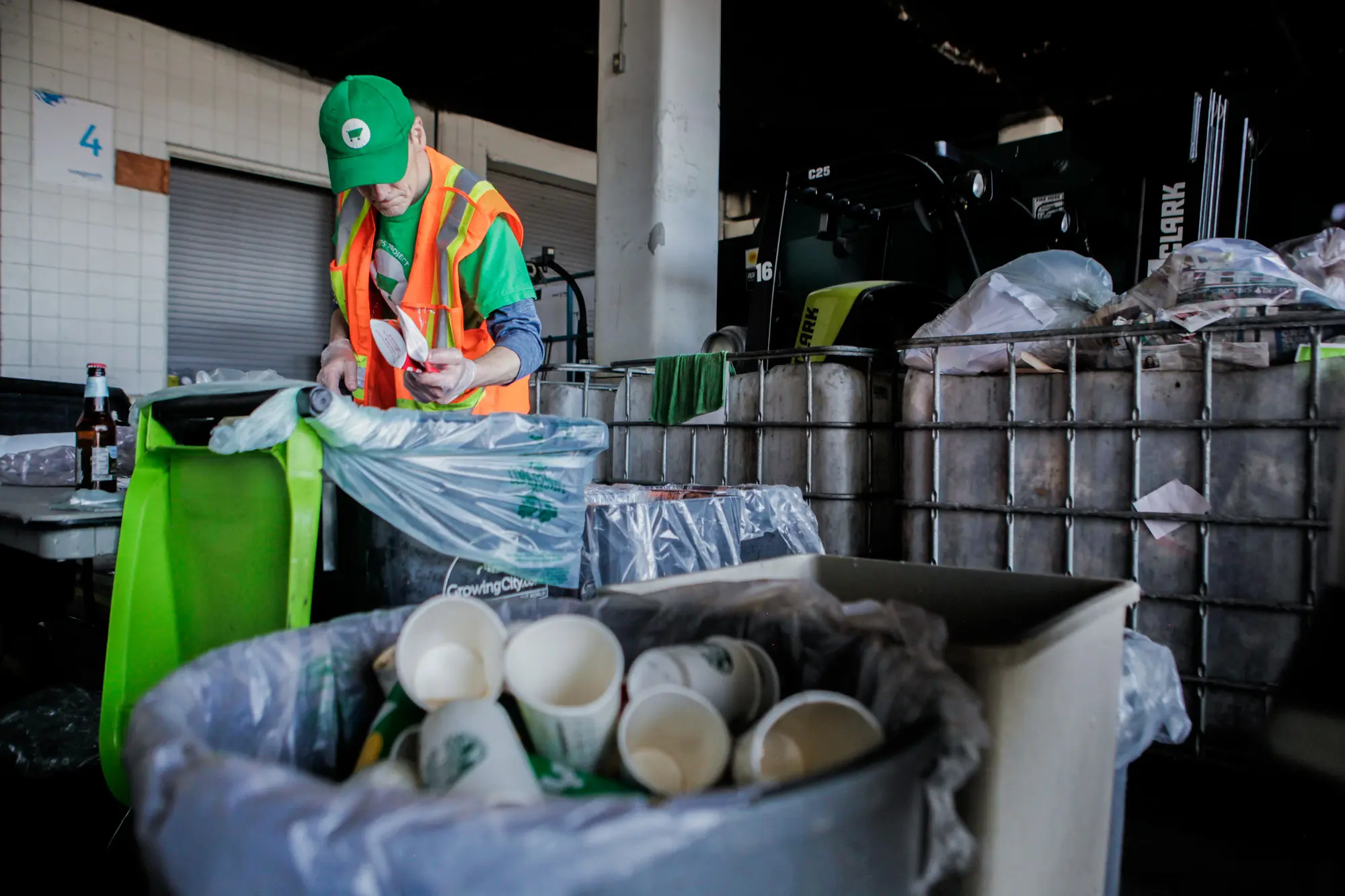 Hawkey says their services involved efficiently sorting through bags of waste by removing cans and bottles for recycling as well as separating items, like coffee cups, that were compostable. Many of the cups from the Convention Centre were used for the Coffee Cup Revolution. He appreciated that the Convention Centre was a green venue, and that they had obviously invested in systems and equipment for streamlining waste reduction.