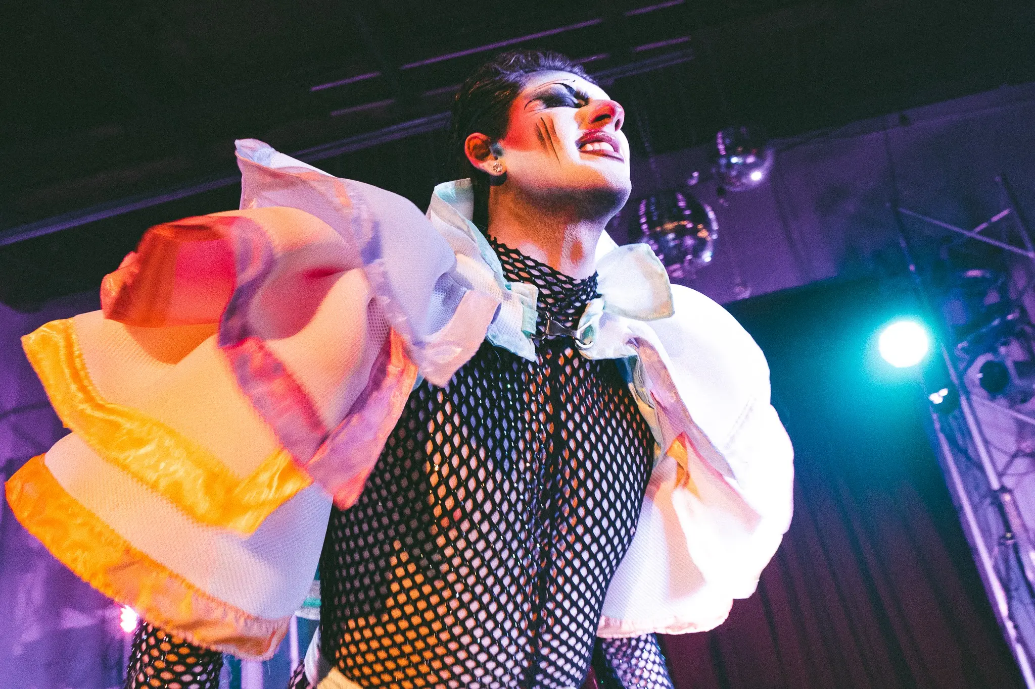Rogue, a non-binary Jewish drag artist with the tagline “Shalom hi,” has been a drag performer for the last five years. They’re mostly self-taught, although they did train in hip hop and musical theatre as a kid. Initially as a drag artist, they felt the need to be a hyper feminine blonde, partly to live up to a specific drag aesthetic, but it just wasn’t who they were. Instead, three years ago, they focused on performing as an androgynous club kid and experimenting with other stage personas – and the crowds have been loving it. “This city has always been pretty accepting of alternative performers. I just didn’t want to really put myself out there. And it took me feeling comfortable in the space for a good little bit to start exploring,” they say.