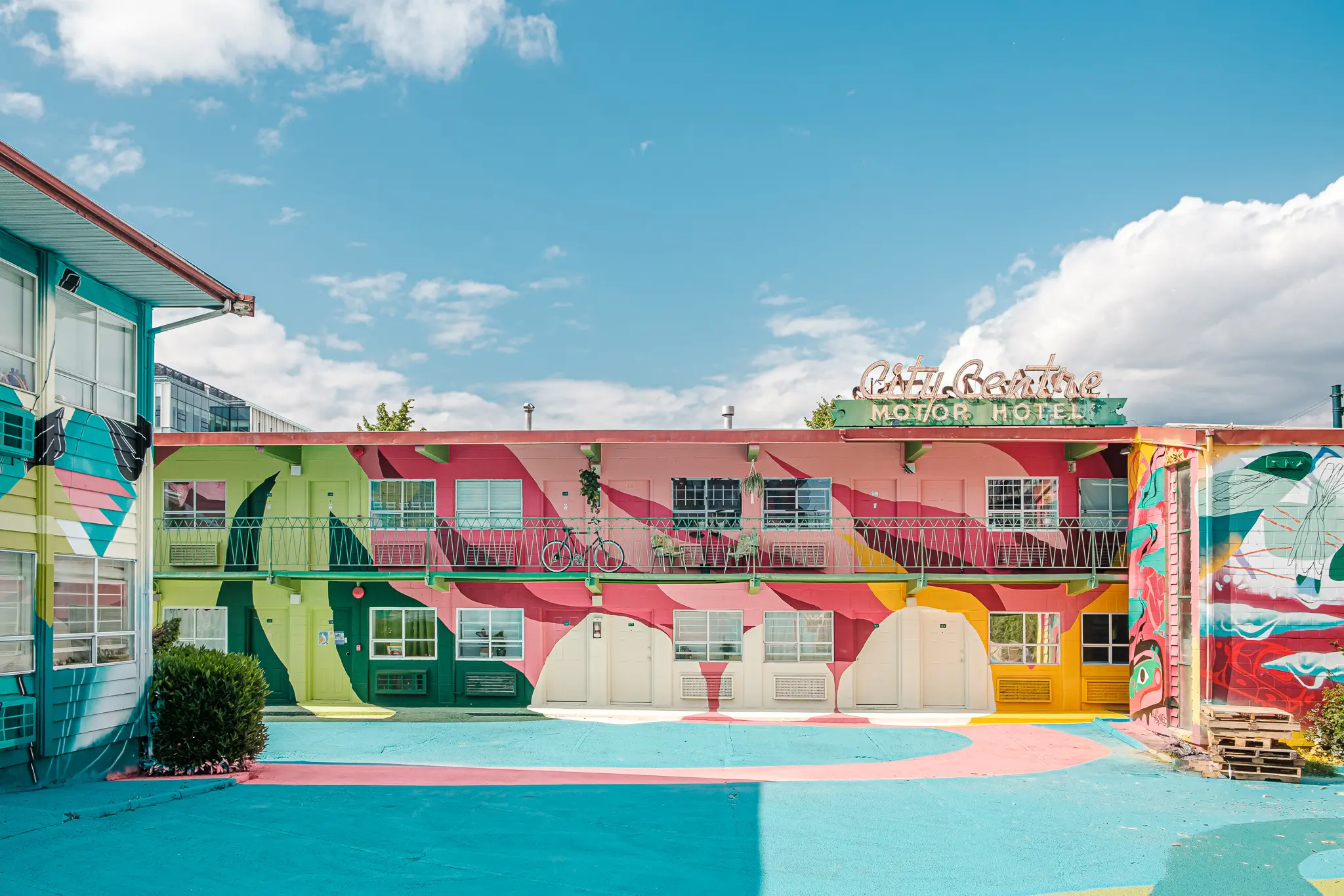 - City Centre Project – Mount Pleasant’s iconic City Centre Motel has been transformed into a temporary creative and community space: Motel rooms have been converted into artist studios; the exterior has been covered with VMF’s largest mural-to-date; the site will serve as a community space for events including Vancouver Mural Festival’s Hub this summer. This project serves as a model for arts-driven placemaking and a vision of how underused and transitional space can be reimagined and repurposed for community well-being.