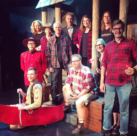 The skits included a spontaneous camp fire musical, a spoof on the Molson “I am Canadian” commercial, a scene that partially involved begging for a selfie from Justin Trudeau, another that had players moving in and out of William Shatner mode (What. Are. You. Doing. Over. There?), and an over-the-top one involving so-bad-it’s-good franglais and a monstrous poutine. During intermission, audience members also got to write down what they loved most about Canada, resulting in some madcap scenes. Intermission also gave time for couples/friends/family to take a pic on stage as Anne of Green Gables and a lumberjack.