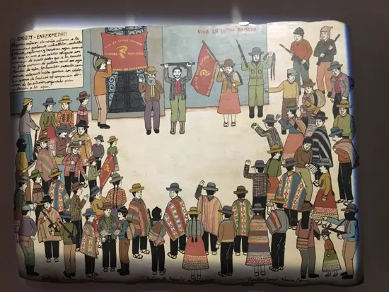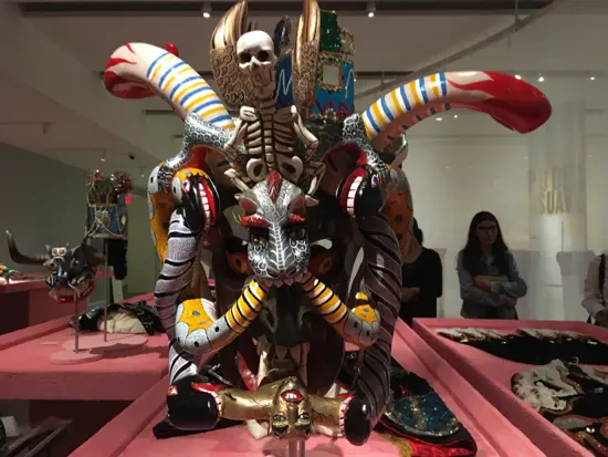 Sunnucks gave a tour of the exhibition before opening day, explaining the thinking behind her choices and arrangement of objects. Arts of Resistance is organized into five thematic areas that look at various ways marginalized groups (especially Indigenous rural peoples and women) have leveraged their artistic and folkloric creations in order to challenge violence, colonialism, and (state-sponsored) terrorism.
