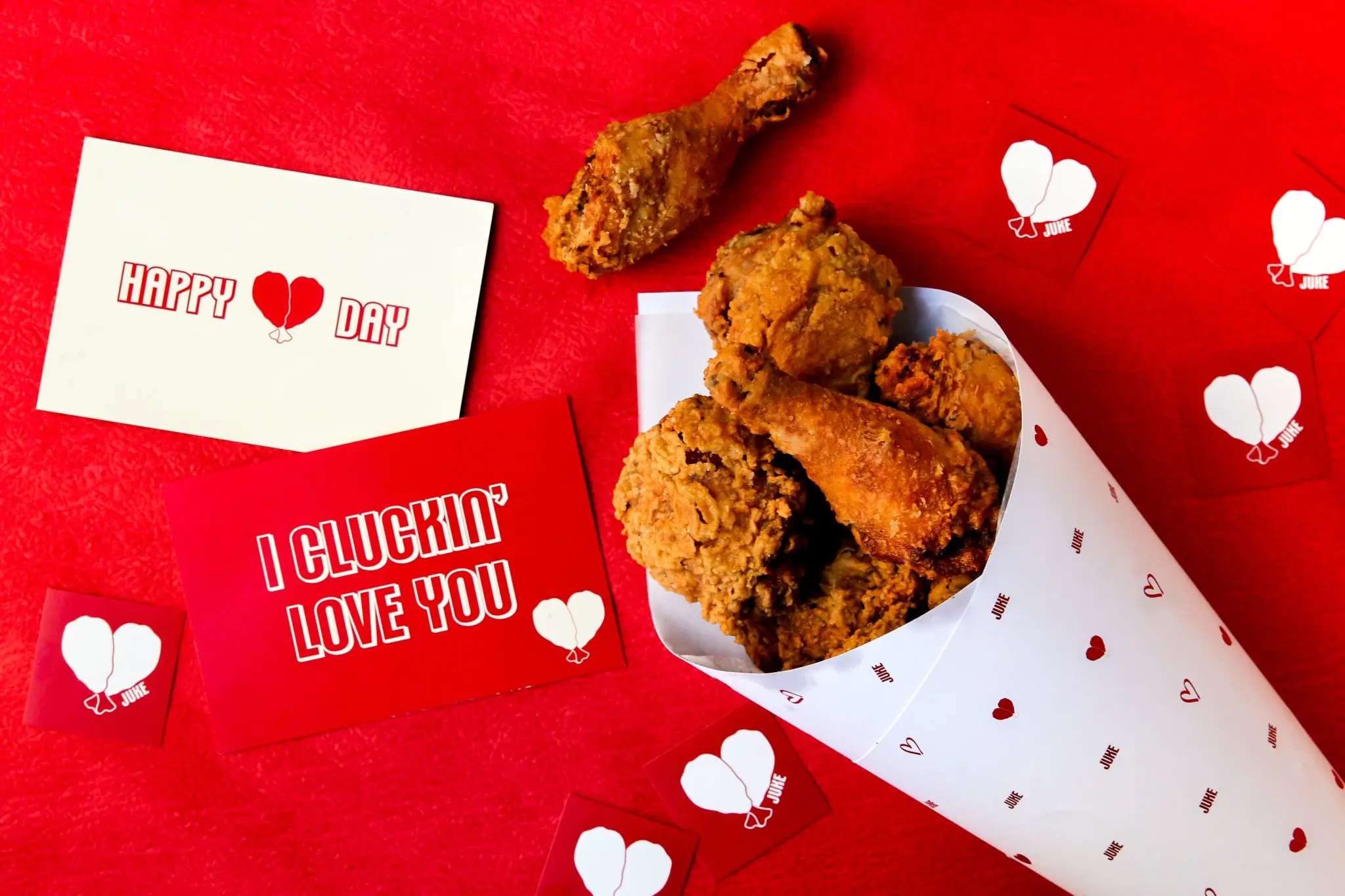 Once again, Juke Fried Chicken is sharing the love on Valentine’s Day in true Southern-fried style with the return of its popular and perennially sold-out ‘Let’s Cluck’ Fried-Chicken Bouquets. Each bouquet swaps out the been-there, done-that Valentine’s Day floral arrangement for eight mouthwatering pieces of Juke’s trademark gluten-free, crispy fried chicken in a decorative wrap for $29 each plus tax. Juke will also be open for lovers and significant others on Valentine’s Day with its full lineup of Southern-fried chicken, sticky pork ribs and snacks, salads and sides available all night long in addition to an array of signature and classic cocktails, craft beer and wine. Available in limited quantities, orders can be made online for pickup on Friday, February 14.