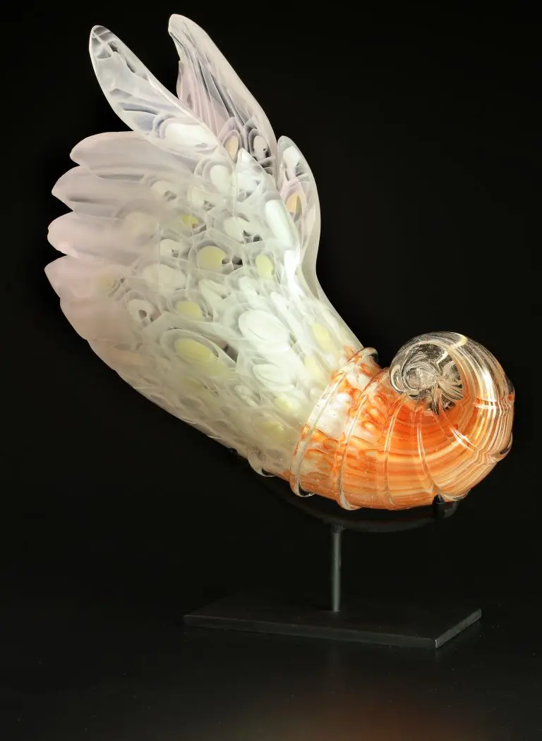 “The inspiration for my blown glass art has always come from my dialogue with my inner world, and is a reflection of my life experiences. After the loss of my husband, I experienced many struggles; trying to find my soul again and re-establish solid ground under my feet. As birds always fly back to their nests instinctively, I found myself going back to my creative path, which has always been my compass. Since then, through my daily creative practice, I’ve attempted to connect with my inner self to seek the meaning of loss, how to let go with love, and how to be in the present moment. I hope this exhibition will speak to many people, just like a spirit messenger delivered inspirations to me.”