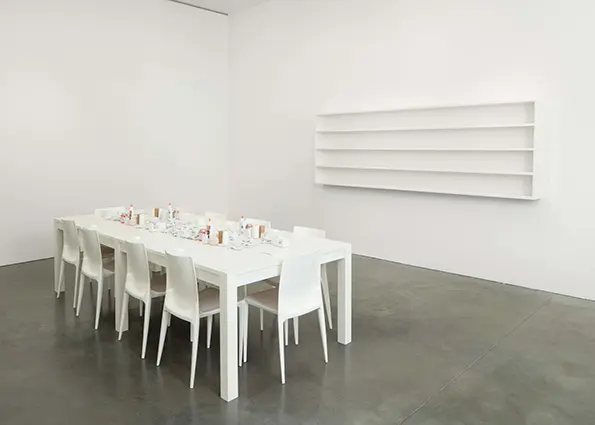 Mend Piece (Andrea Rosen Gallery, New York City version) will be accompanied by an espresso bar. The idea, according to the Rennie Museum, is to further “the notions of community and togetherness.”