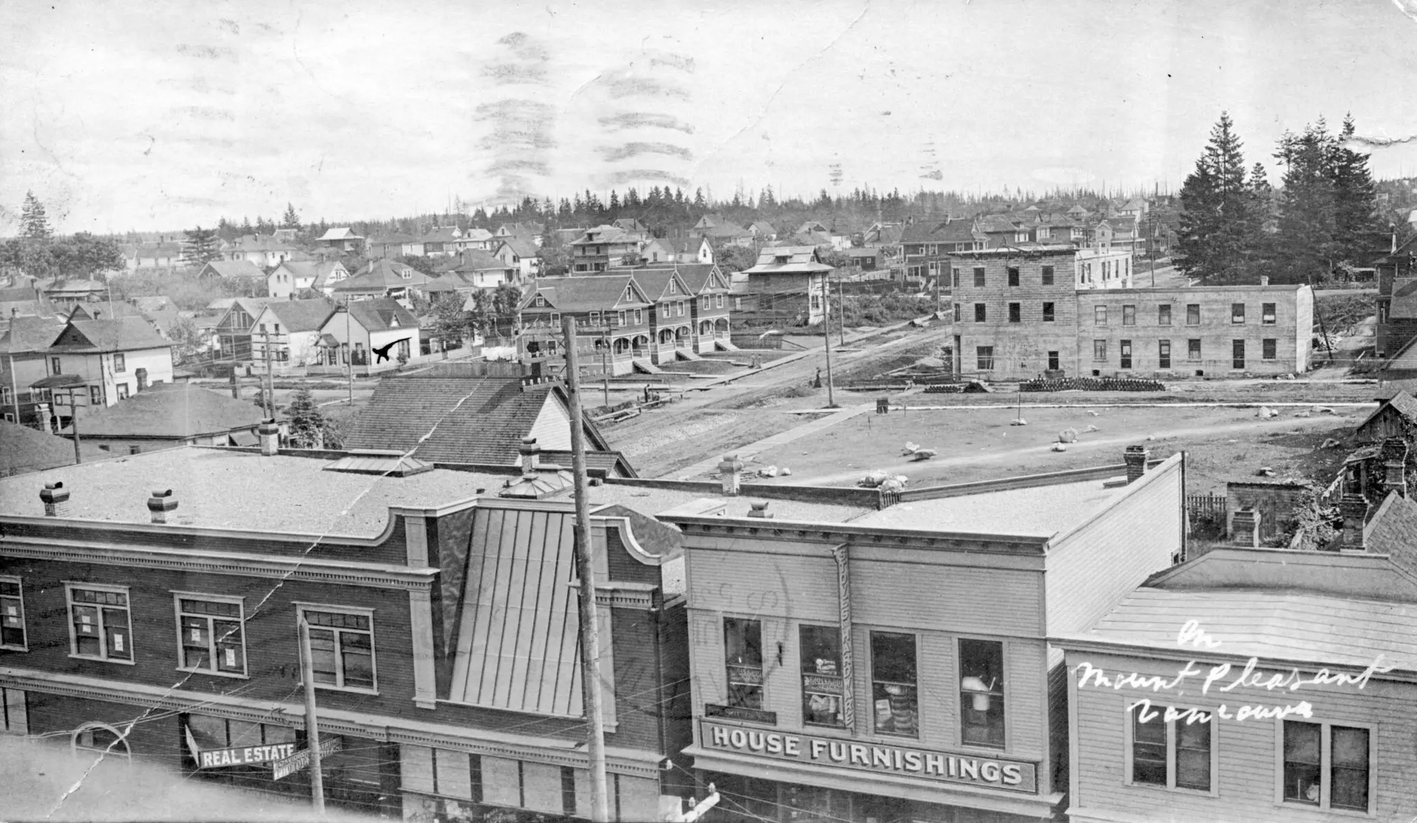 The start of the Gold Rush in 1858 brought in people looking to strike it rich, boosting activity. The area also attracted the attention of developers and businesses, including Henry Valentine Edmonds, who gained the rights to part of the land (District Lot 200A) in 1869, as well as Hastings Sawmill, who used the trees in the area for timber. Edmonds named the area “Mount Pleasant” after a village in Ireland where his wife hailed from. Dominating the area was a creek (parallel to today’s Main Street), which became known as Brewery Creek due to the many breweries that made use of the water.