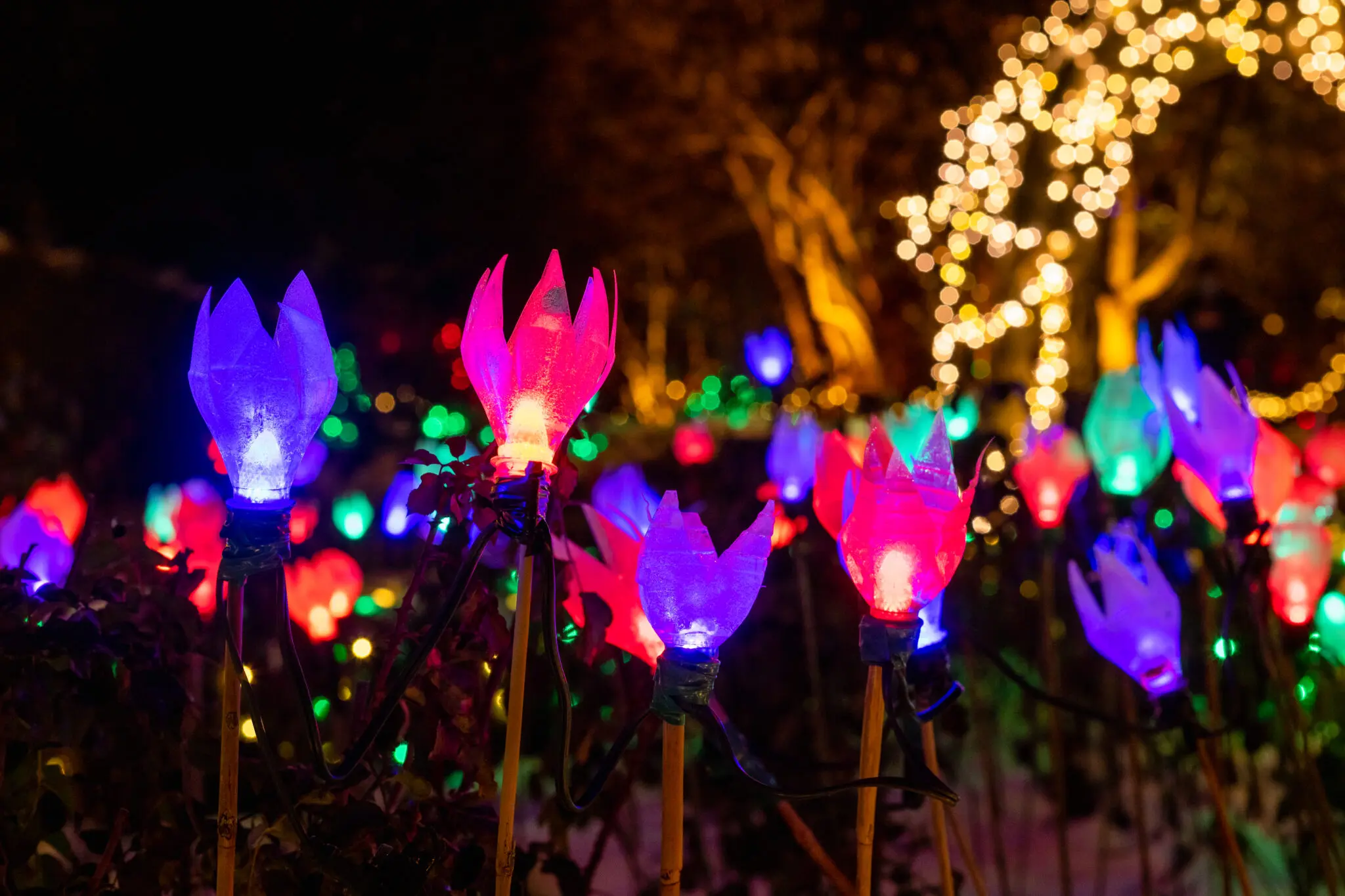 While the “Dancing Lights” feature continues to be a crowd favourite, visitors can also expect more themed light areas to explore. Enjoy the vibrant colours reflecting the biodiversity of Garry Oak Meadows, the feature of this year’s festival. This luminous display is inspired by camas flowers, buttercups, and other wildflowers found in these endangered local ecosystems.