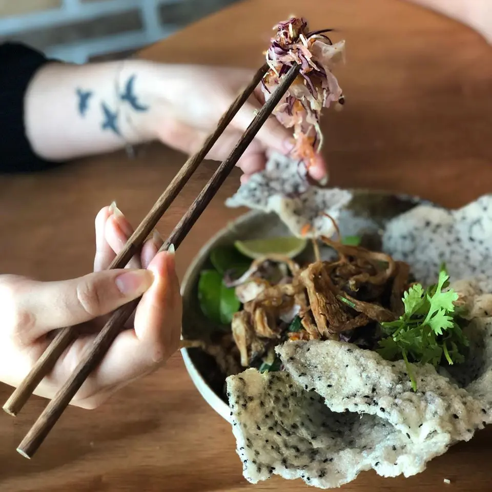 Vietname cuisine’s emphasis on fresh greens and herbs lends itself really well to plant-based cuisine. Do Chay in East Vancouver offers some really flavourful vegetarian and vegan dishes, such as crystal dumplings filled with wood ear mushrooms and veggie round; Uncle Hing’s wings (crispy oyster mushrooms) tossed in sweet and spicy sauce; and a vegan pho with bean curd skin, avocado, pea tips, broccoli, oyster mushrooms, daikon, and rice noodles.