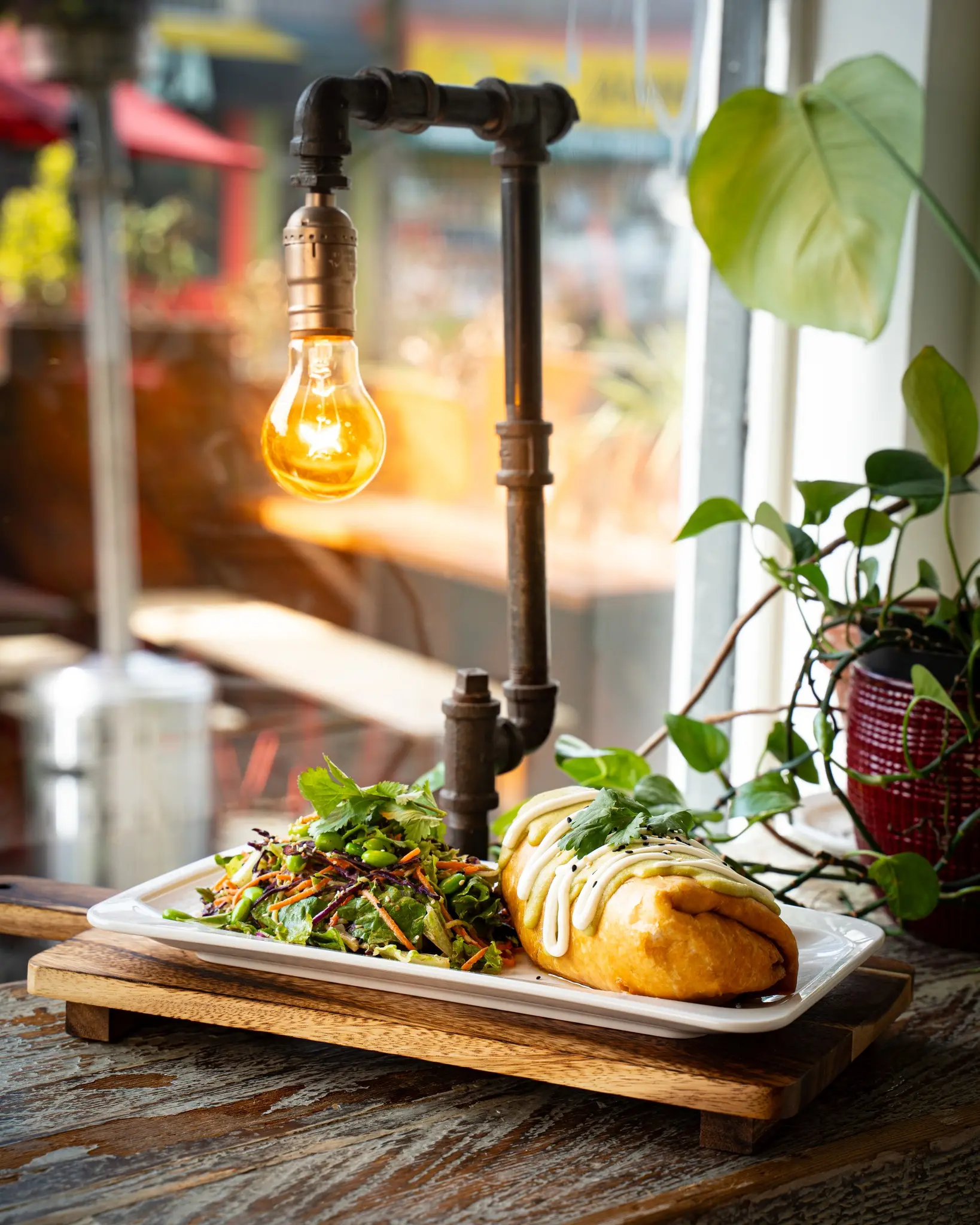 Founded in 1968, Vancouver’s grandfather of vegetarian restaurants, The Naam, soldiers on in Kitsilano. Long-time fans flock to the restaurant for nostalgic bites such as their oven-baked sesame, turmeric fries with miso gravy; chili deluxe; and dragon bowls, such as the Naam, with steamed veggies, brown rice, miso gravy, peanut sauce, tofu, and grated carrots and beets.