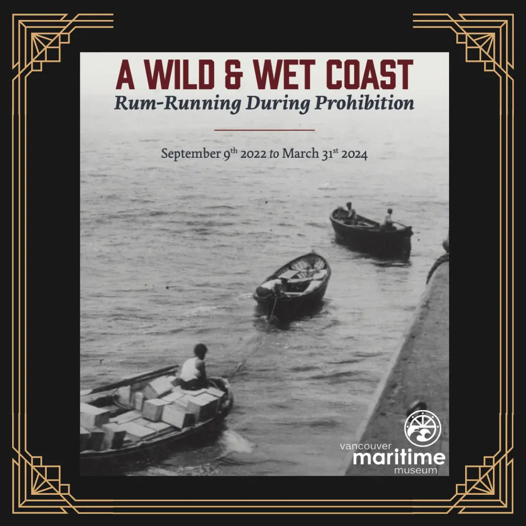 A Wild and West Coast: Rum-Running During Prohibitions (running until March 31, 2024) tells the story of British Columbia who sold liquor to Americans from 1920 to 1933 during Prohibition. This fascinating exhibition details a lively time in the province’s history in which people went to considerable trouble in order to capitalize on the demand for contraband alcohol south of the border. The period marked fraught relations between the two countries due to this liquor trade, as well as emerging regulations and laws in Canada.