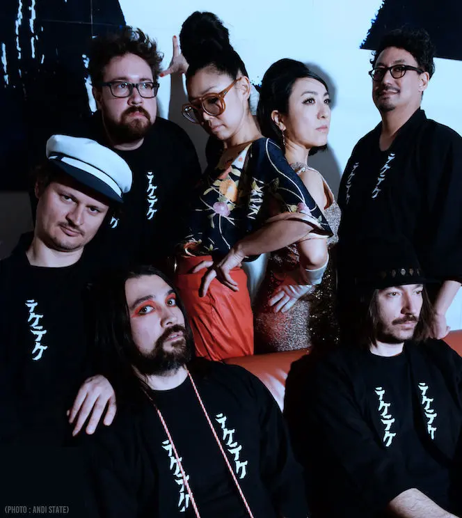Teke::Teke—This seven-piece band from Montreal takes inspiration from Japanese surf-guitarist Takeshi Terauchi for a shoe-gaze-y, post-rock experience. Composed of musicians from other Montreal bands, they use standard rock gear alongside traditional Japanese instruments (shinobu flute, shamisen, taisho koto). (Sat. 4:15 pm-5 pm, Diamond Stage; Sun., 3-4 pm, Diamond Stage)