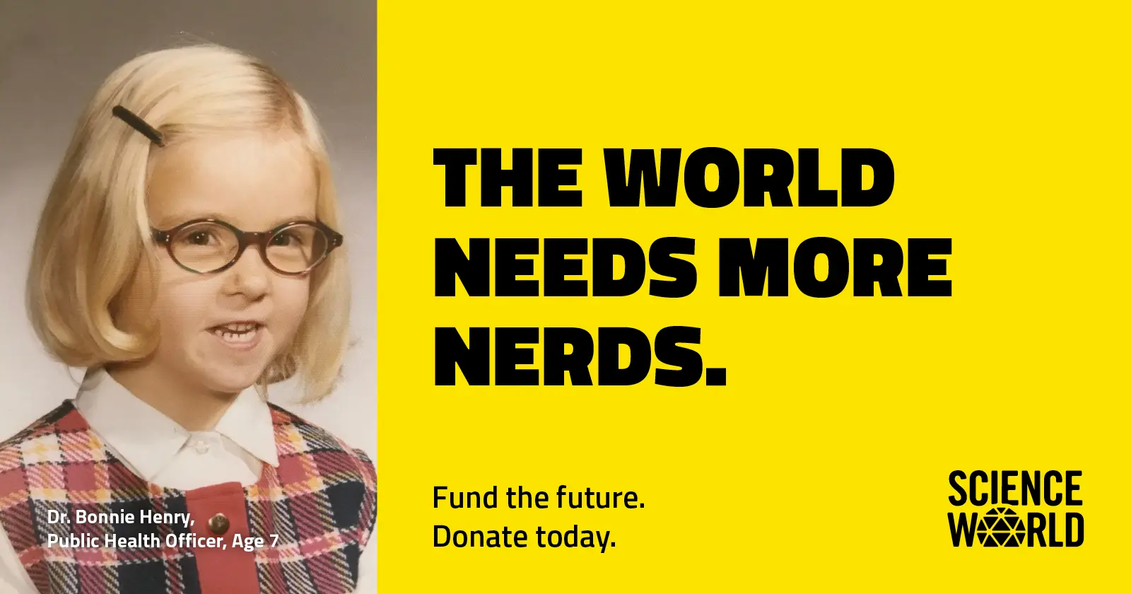 Science World aims to engage the people of British Columbia in STEAM (science, technology, engineering, art and design, and math) literacy. When the iconic dome closed its doors in March 2020, it immediately lost 85% of its revenue streams, which is why the non-profit launched a fundraising campaign, The World Needs More Nerds, calling on the public to support the dome through these tough times. The campaign features a 7-year old Dr. Bonnie Henry, Astronaut Chris Hadfield, and other notable “nerds”. With the re-opening of Science World, you can now offer support by booking your visit!