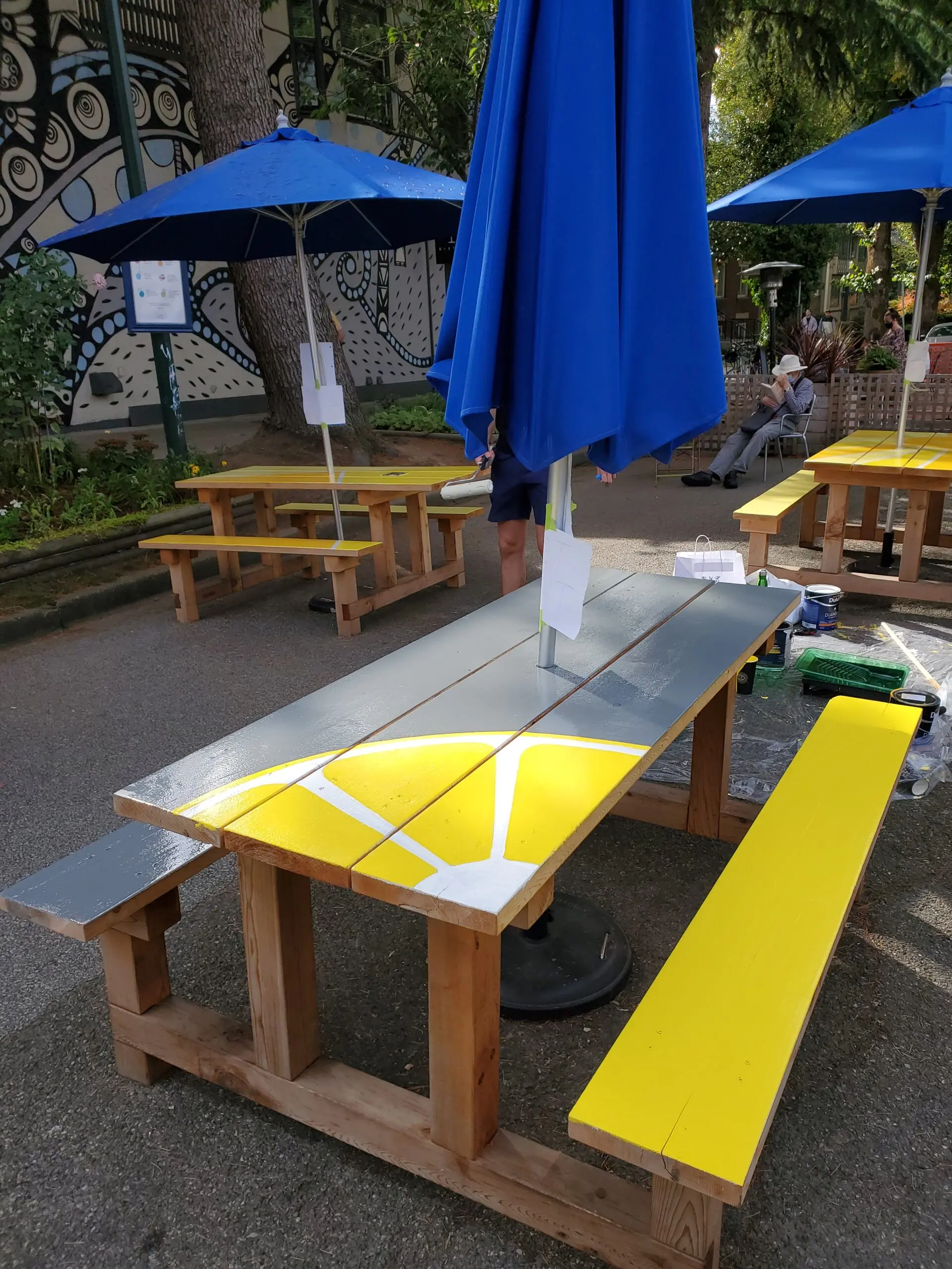 The next stage, the Placemaking Program, launched this summer, inviting community organizations and residents to add character to select pop-up plazas (e.g., East 27th Avenue and Fraser Street, East 21st Avenue and Main Street) through design enhancements or new shared amenities. The options ranged from painting the picnic benches with colourful artwork, to tending planters in the space.