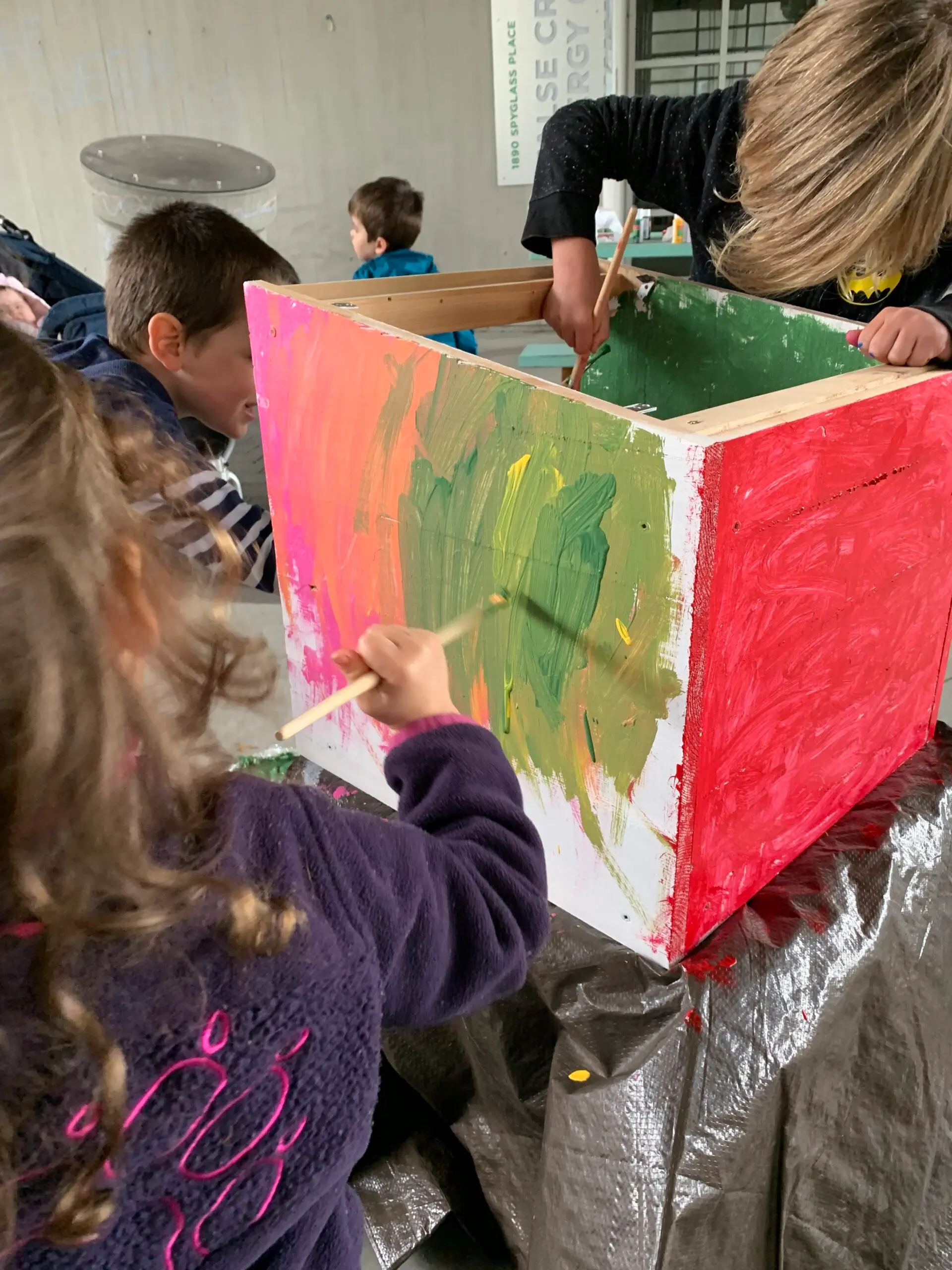 The trio bought a kit from MakersLab and some outdoor paint from Michaels. They then hosted a painting party, inviting kids in the neighbourhood to decorate it. “They were very diligent about covering all the surfaces, so inside and outside are all different colours. So, you definitely won’t mistake it for anything but a kid’s library,” says Chan.