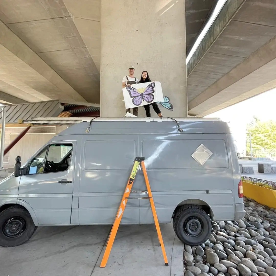 Chan, who studied Communication Design, initially wanted to paint directly on the concrete pillars on the south side of Cambie Street Bridge but eventually created vinyl stickers. “I chose to design and install monarch butterflies because they are a symbol of summertime. I also found out that they migrate from South and Central American to southern Canada every year. They are an example of a species that is very sensitive to changes in the climate,” says Chan.