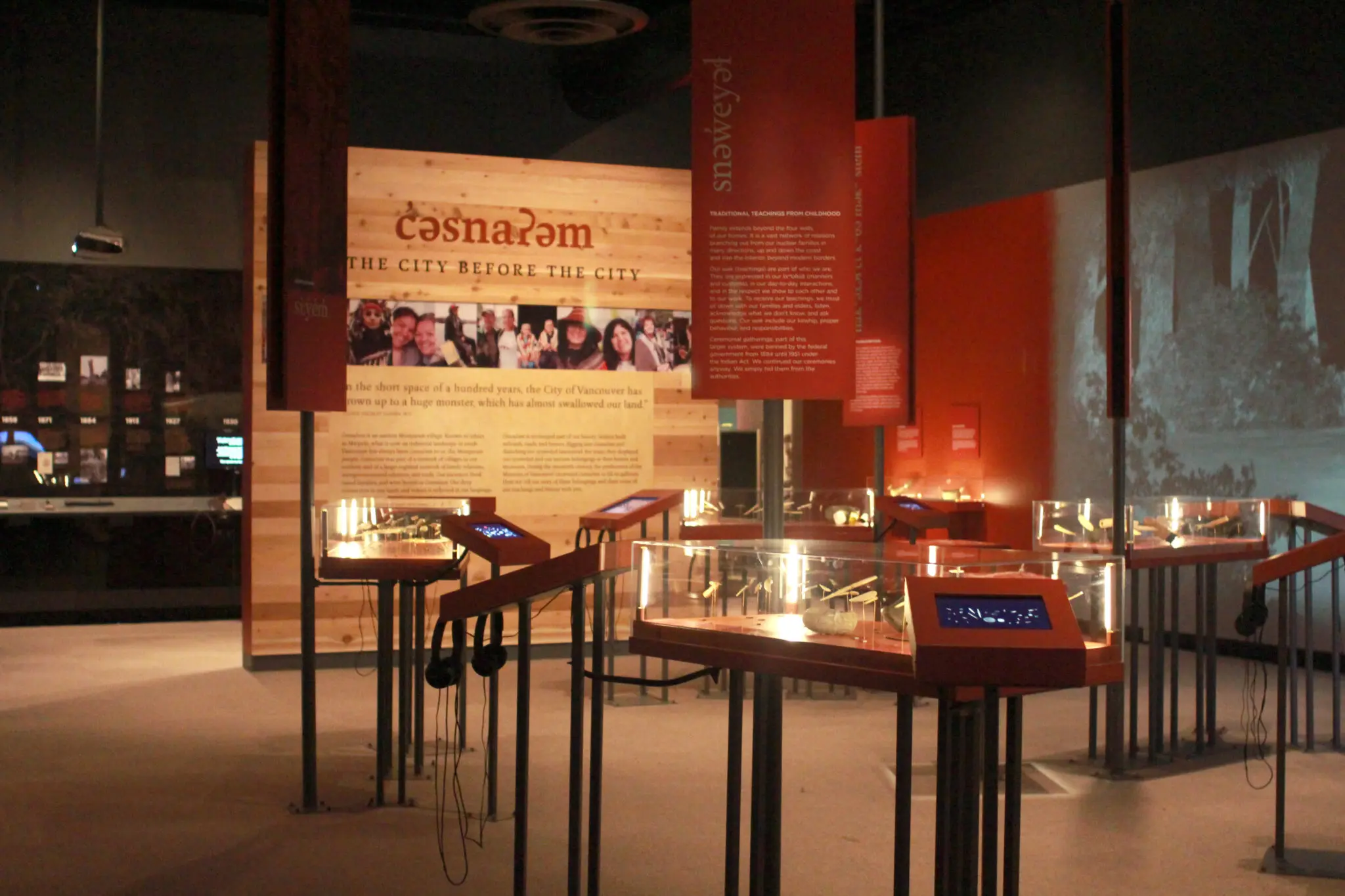 The present exhibition recognizes the damage that was done through this taking (and discarding) of Musqueam belongings, as well as acknowledges and celebrates the important history embedded in this land and the vital relationship that Musqueam people had and still have with it. The City Before the City invites visitors to consider what existed before Vancouver came into being, how Vancouver has evolved, as well as how the Musqueam people have continued to nurture their holistic connection to this territory. The exhibition invites sharing and learning about the place that is now called Vancouver.