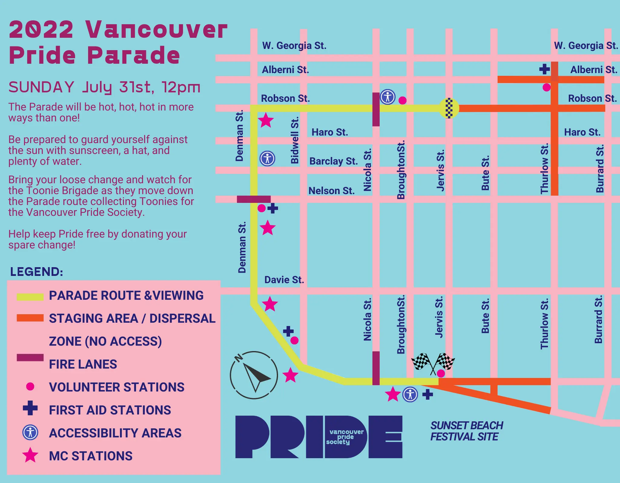 Fortin is really looking forward to this year’s Pride Week and Pride Parade. She sees Vancouver’s Pride Parade as distinct in many different ways. “I think one of the things that makes us unique is that we are on a long weekend: it’s BC Day Long Weekend. We have civic event status, so the City is a partner in this. We’re really thinking about the 2SLGBTQAI+ community but the broader community as well,” she says.